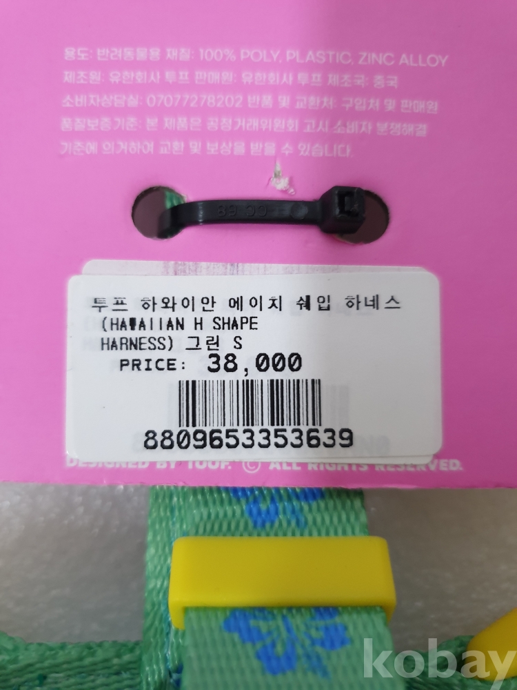 {천원경매} Y-3-1082 투프 하와이안 에이치 쉐입 반려견 하네스-그린 (S)