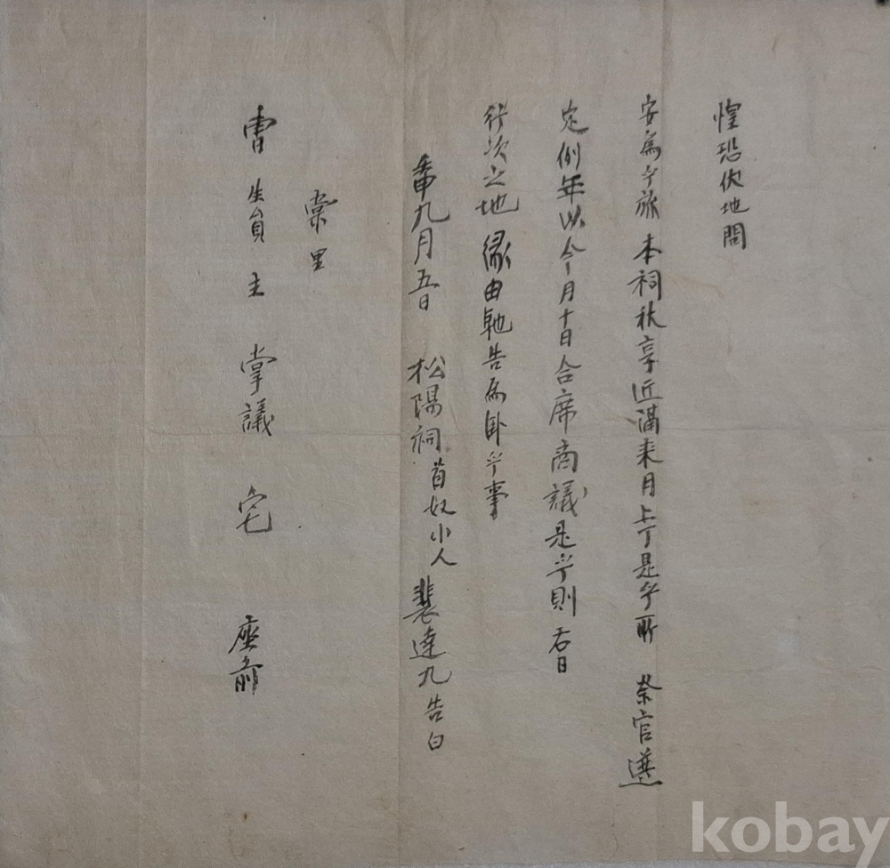 ◈ 송양사(松陽祠)의 추향(秋享)에 9월 10일 제관(祭官)을 선발하겠다는 사유를 아뢴 글.