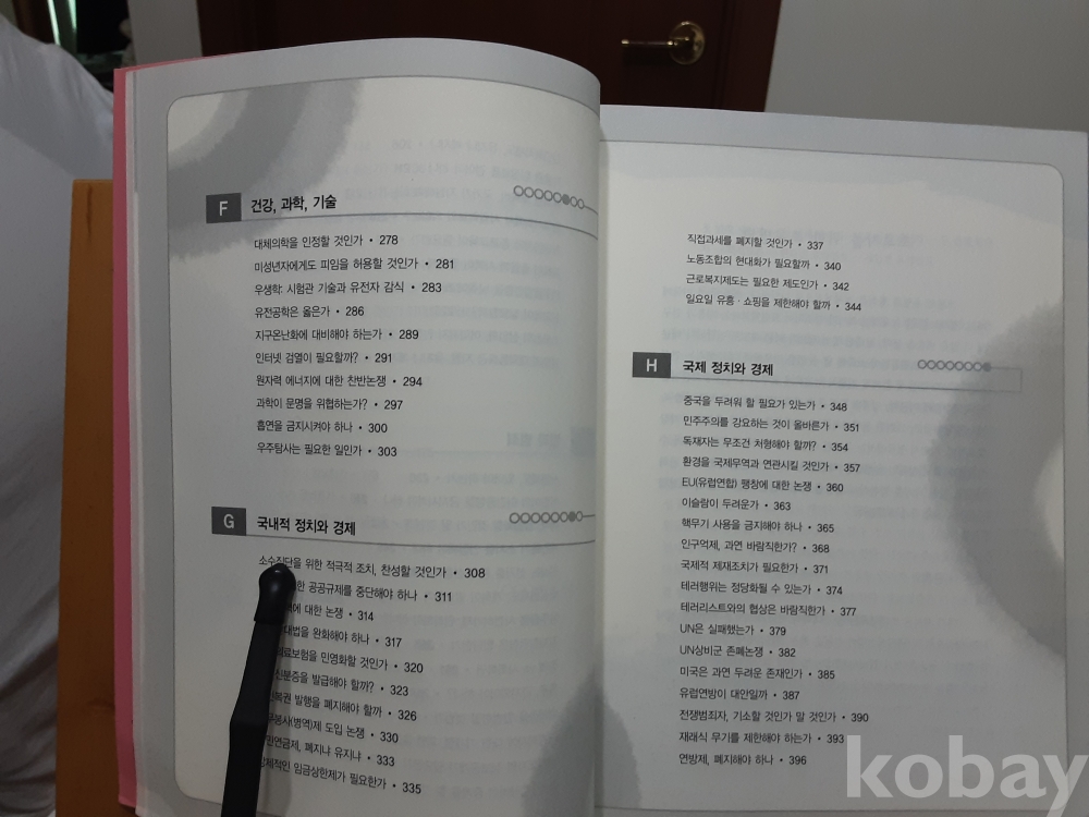 1. 안락사, 지구 온난화, 부의 재분배 등등 주제에 대한 찬반 의견을 다룬 유럽식 고품격 실전토론 가이드 북