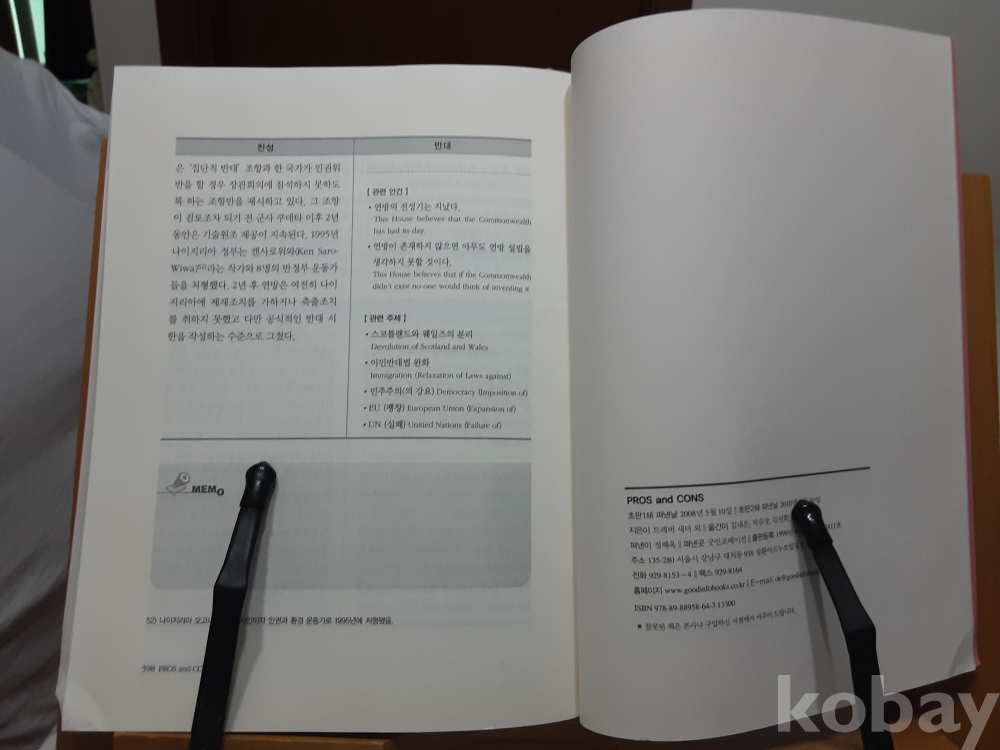 “Pros & Cons(영어원서)와 찬성과 반대(번역서) 총 2권”