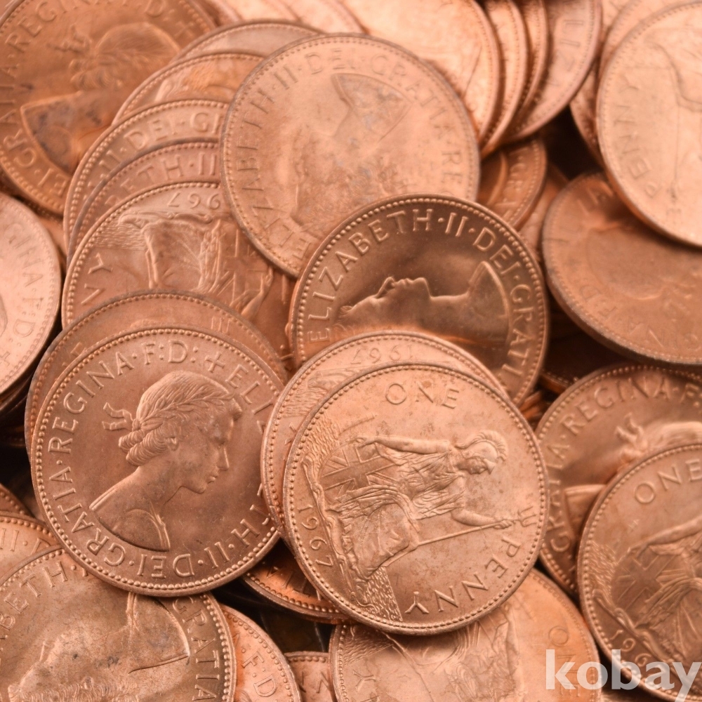 영국 1 페니 대형 주화 1967년 미사용 MINT X 5개