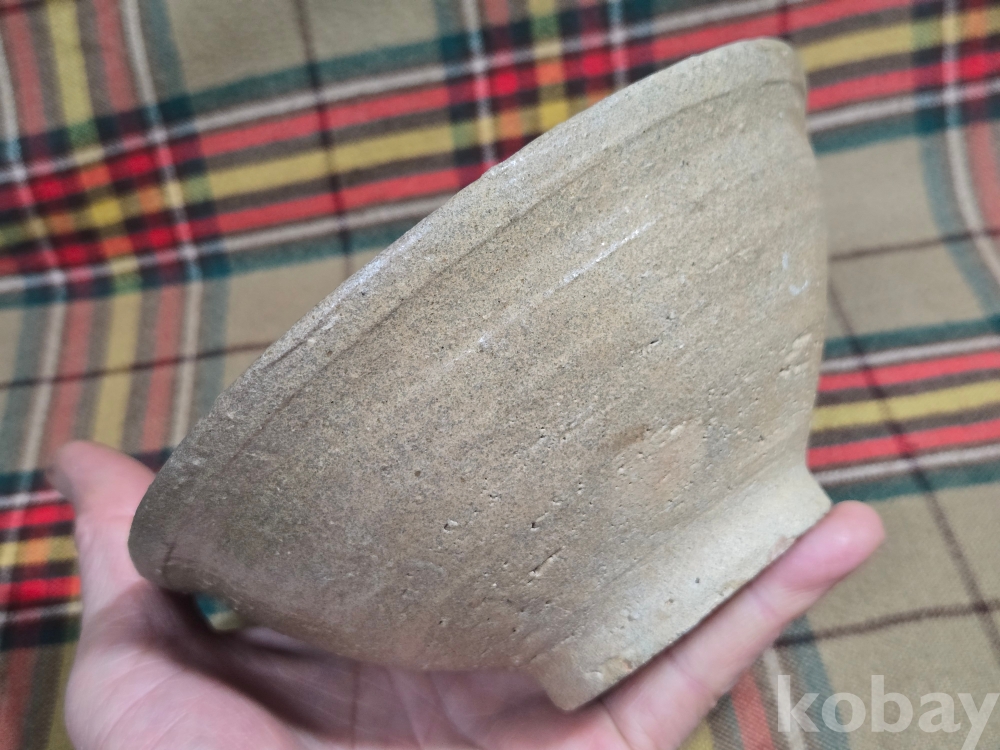 조선초기 서부경남지역. 특히 진해 웅천지역 연질백자 찻사발로 판단되는 부드러운 물레선의 다완입니다.