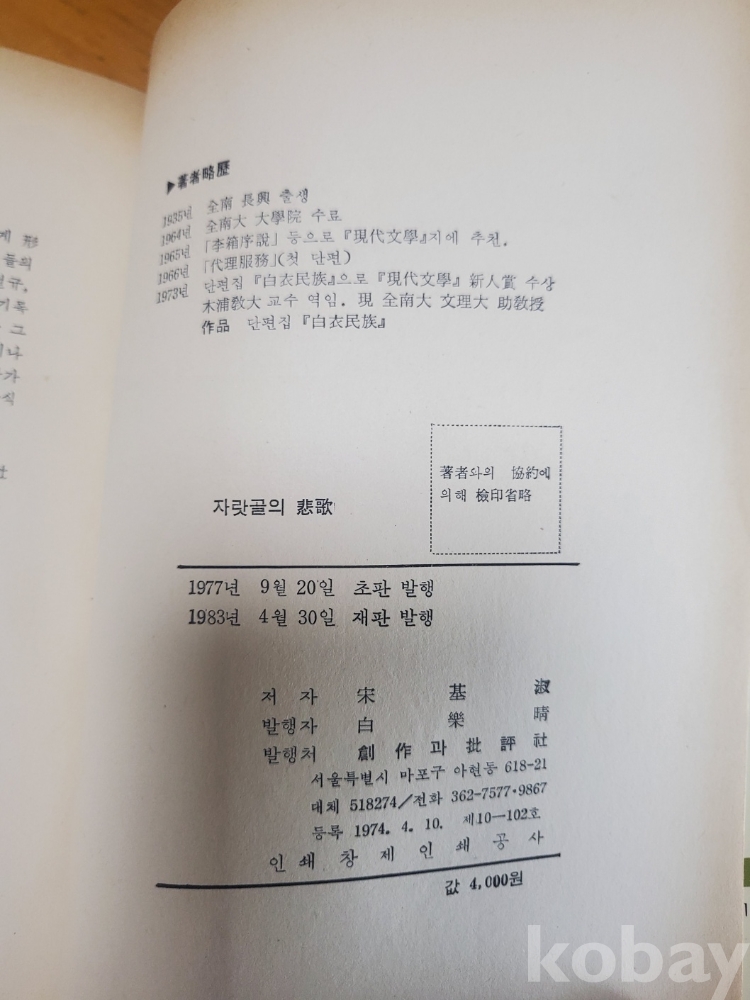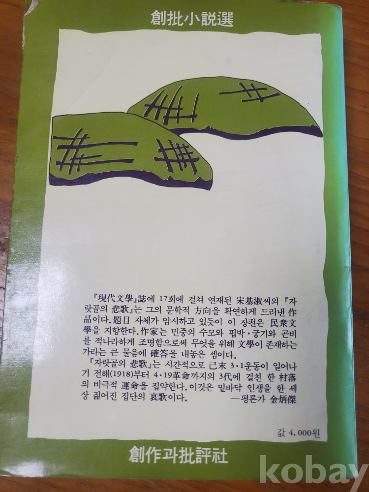 1. 자랏골의 비가, 송기숙, 창작과비평사, 1983년, 490쪽, 상태 상, 사진 참조