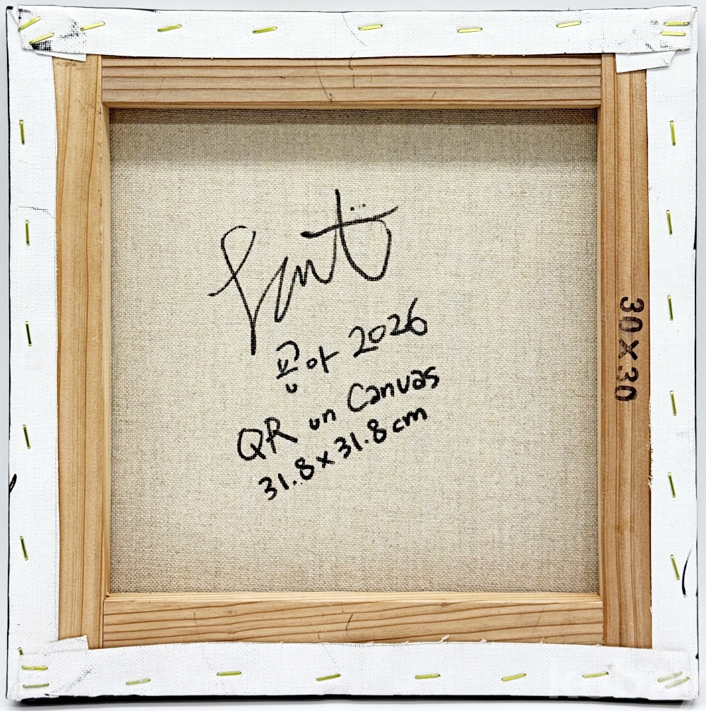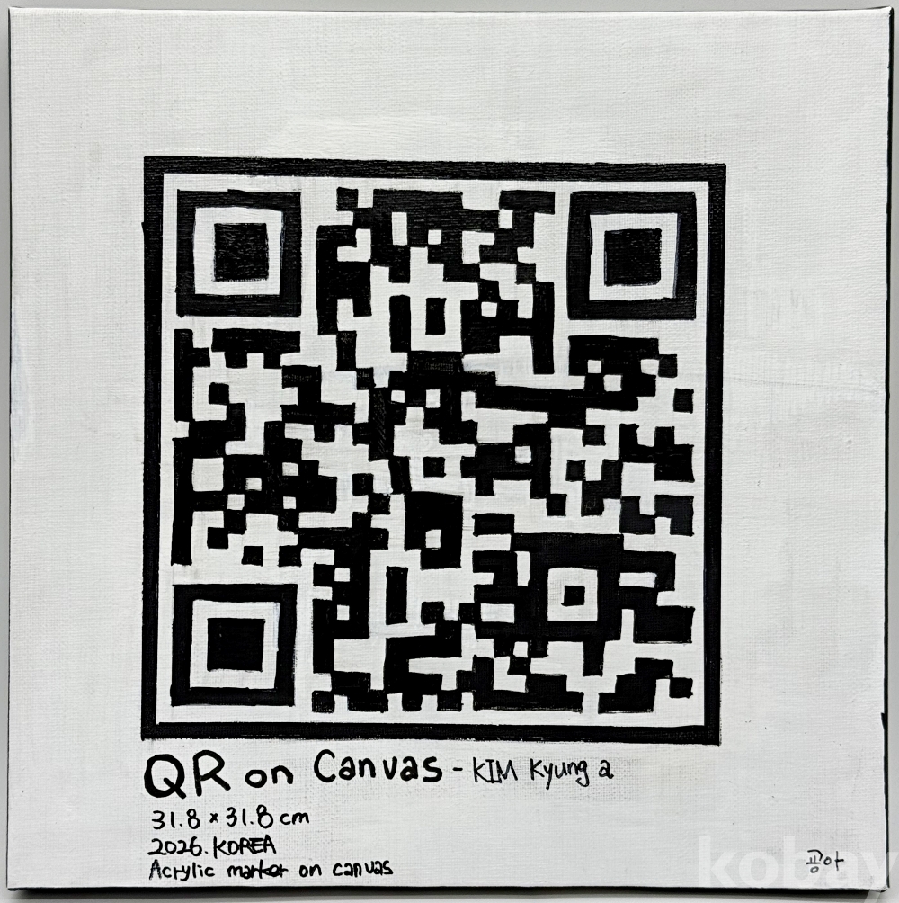 작품 및 작가 소개 | [QR on Canvas] 이 작품은 "인간이 손으로 그린 QR 코드를 기계가 인식할 수 있을까?"라는 예술적 호기심에서 출발한 ‘QR 그리기 시리즈’의 첫 번째 결과물입니다. 작가는 디지털 기호인 QR 코드를 아날로그 방식인 회화로 옮겨오는 실험적인 시도를 보여줍니다. 작품을 가까이서 마주하면 작가의 손길이 닿은 투박하고 불규칙한 선들이 돋보이지만, 일정한 거리를 두고 렌즈를 통해 바라보는 순간 디지털 신호로 치환되어 인식되는 반전의 묘미를 선사합니다. 이를 통해 작가는 디지털과 아날로그, 그리고 인식의 경계에 대한 흥미로운 질문을 관객에게 던집니다. [작가노트] “낙서와 매체를 넘나들며 세상을 ‘귀엽게’ 재구성하는 굥아의 사회 실험” 굥아 작가는 학창 시절 교과서 귀퉁이의 소박한 낙서에서 시작해, 유튜버라는 대중적 정체성을 거쳐 현재는 캔버스와 영상을 넘나드는 예술가로 활동하고 있습니다. 작가는 자칫 차갑고 복잡하게 느껴질 수 있는 삶의 이면을 따뜻하고 '귀엽게' 포착하여, 관객들이 마음을 열고 대화할 수 있는 다정한 시선을 제안합니다. 작가의 작업은 단순한 시각적 유희를 넘어 인간 본성과 군중 심리를 탐구하는 '사회 실험'의 성격을 띱니다. 특히 숏폼 영상과 같은 동시대 매체를 예술 영역으로 수용하여, 화면 속 '시청자'를 전시 공간의 능동적인 '관객'으로 전환하는 과정 자체를 하나의 작품으로 완성시킵니다. 낙서라는 개인적인 기록에서 출발해 대중 매체를 거쳐 예술의 본질로 돌아온 작가는, 익숙한 세상을 새롭게 재구성하며 관객과 끊임없이 소통하고자 합니다. [작가 이력] - 2025년 행정안전부 장관 표창 - 2024년 한국관광공사 지속 가능 K-콘텐츠포럼 홍보대사 - 2022년 전체 TOP 20위, 리뷰 부문 5위 틱톡 크리에이터 - 김포대학교 유튜브 크리에이터과 외래교수(현) - 세종대학교 영화예술학과, 교육학과 졸업 - 300만 팔로워 숏폼 크리에이터(틱톡+유튜브+인스타그램)
