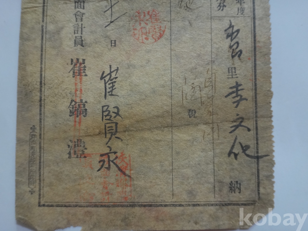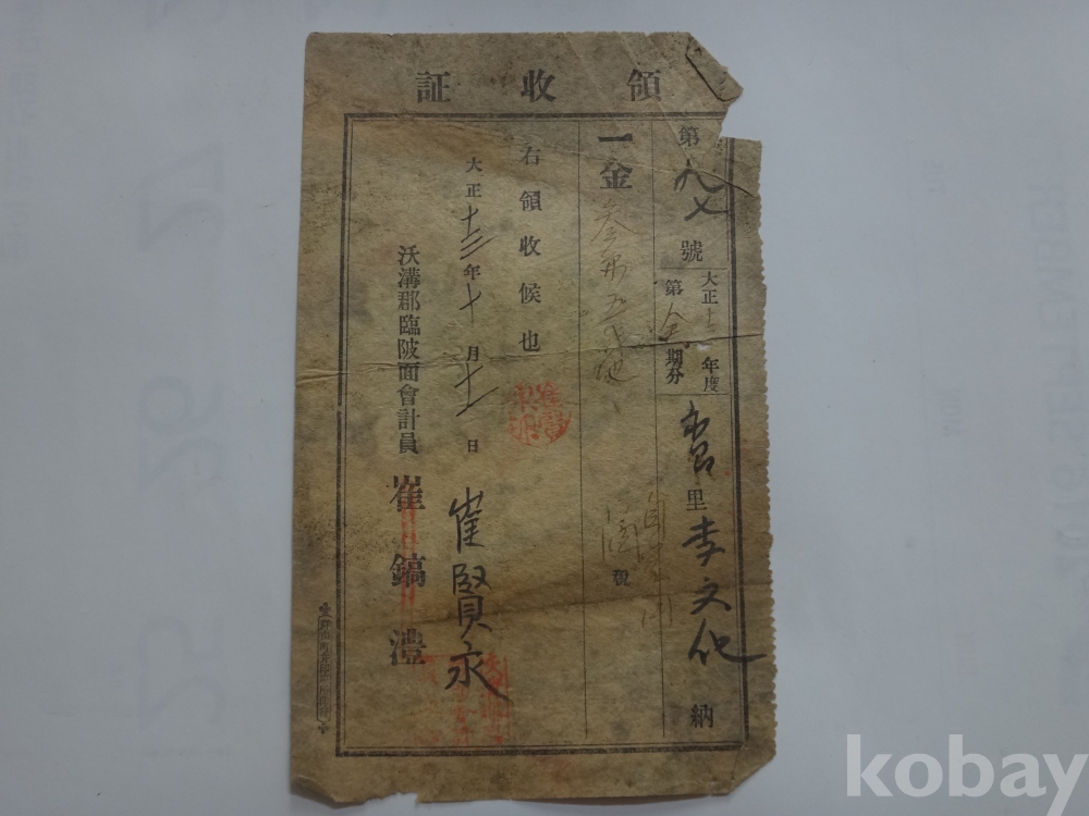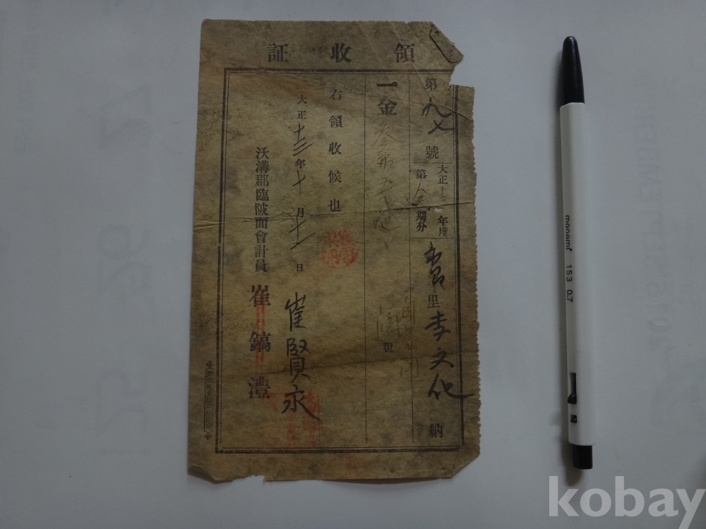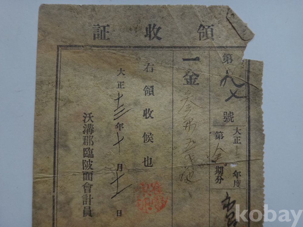 (일제강점기) 자가용 청주세 (自家用 淸酒稅) 영수증 (대정13년, 옥구군 임파면)