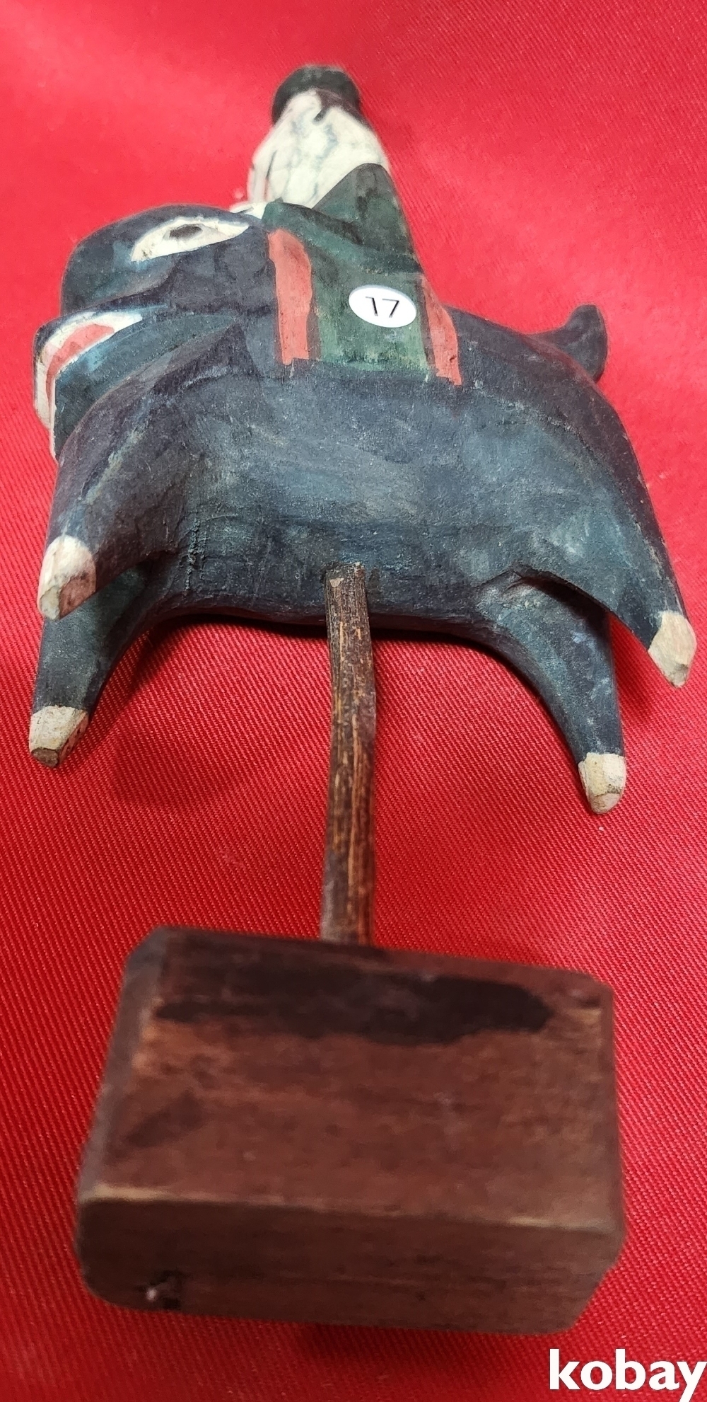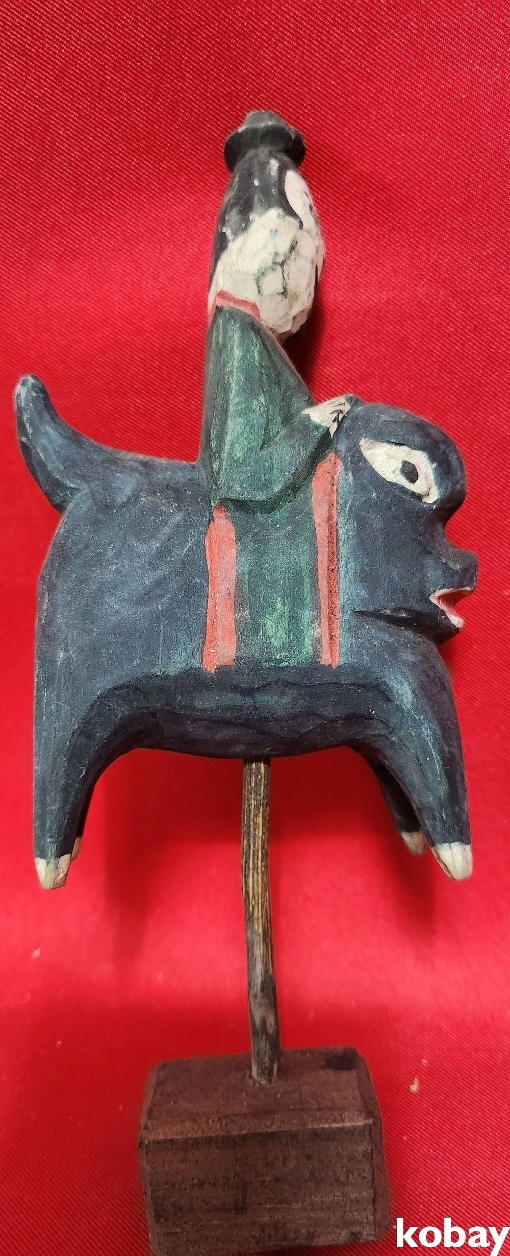 민속품 나무에 당채색으로 완성된 꼭둑입니다,