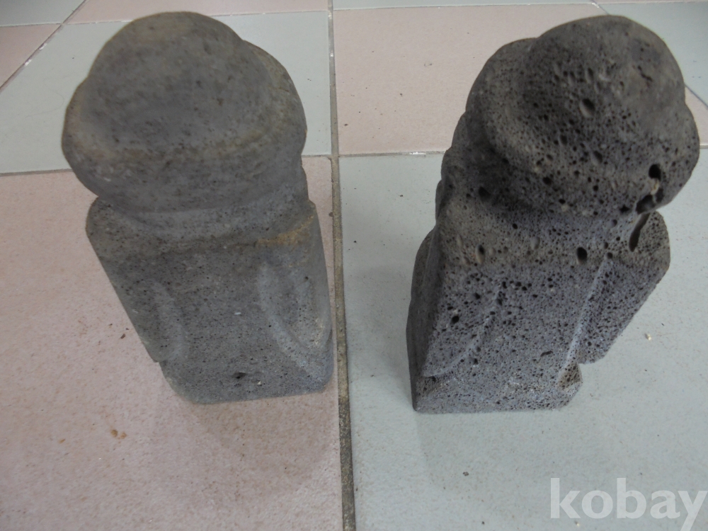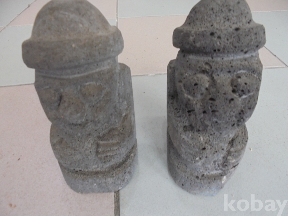 제주도에서 신성시하는 남자가 있다는 깊은뜻이있는 화산석으로 쪼아서만든 제주의상징 하르방 1쌍