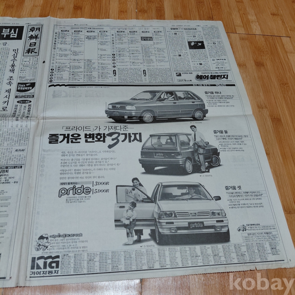 기아자동차 프라이드 광고 조선일보 90년4월5일 올려드립니다