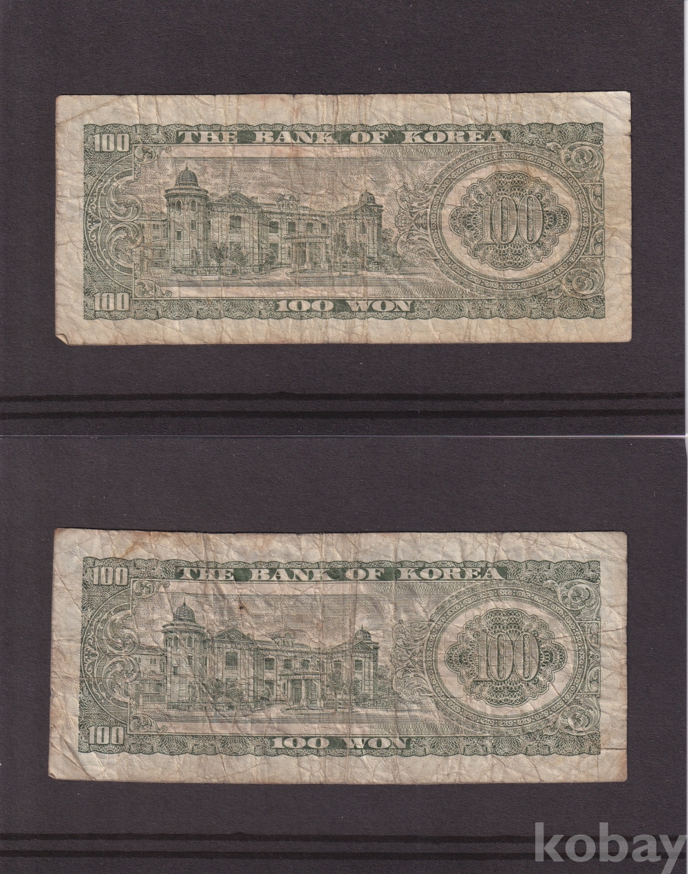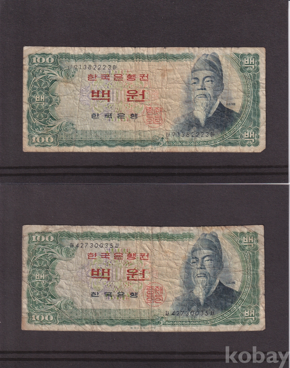 - 한국은행 1965년 세종 백원 사용제 지폐 2장 일괄