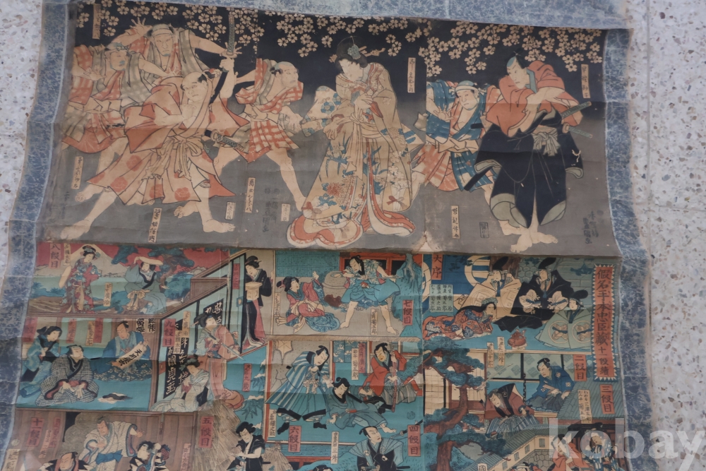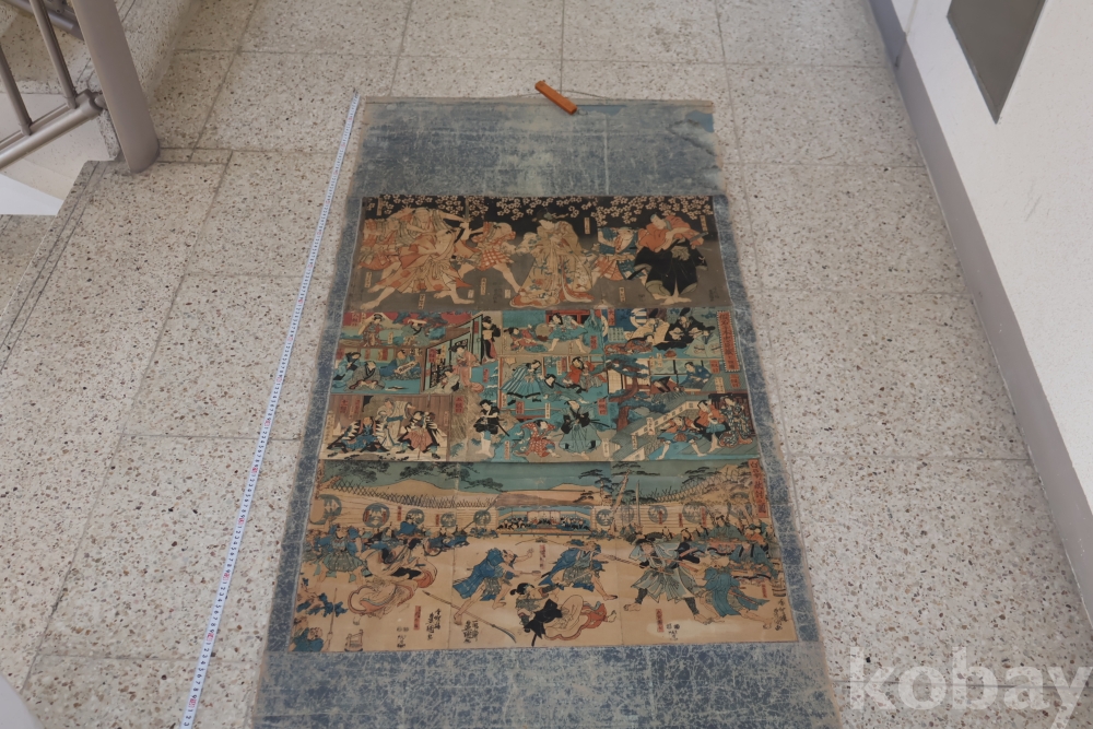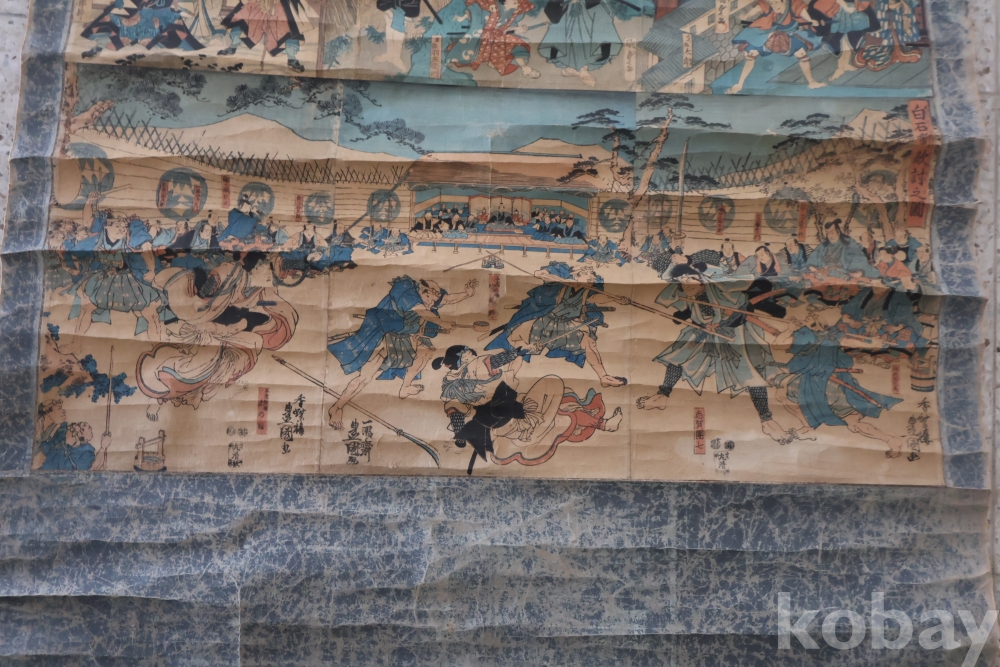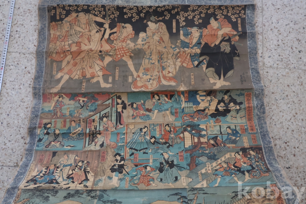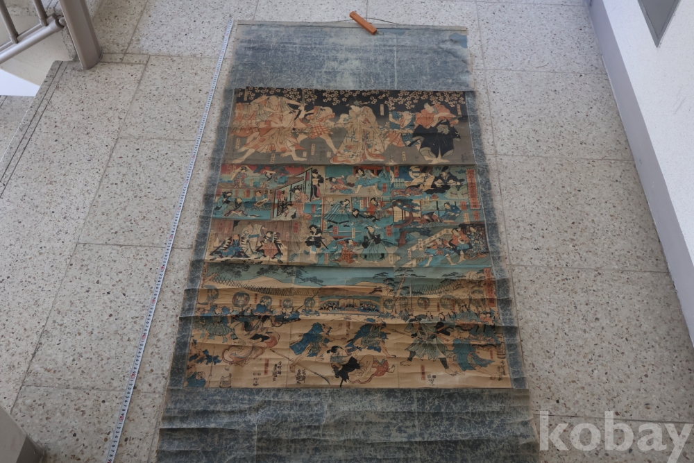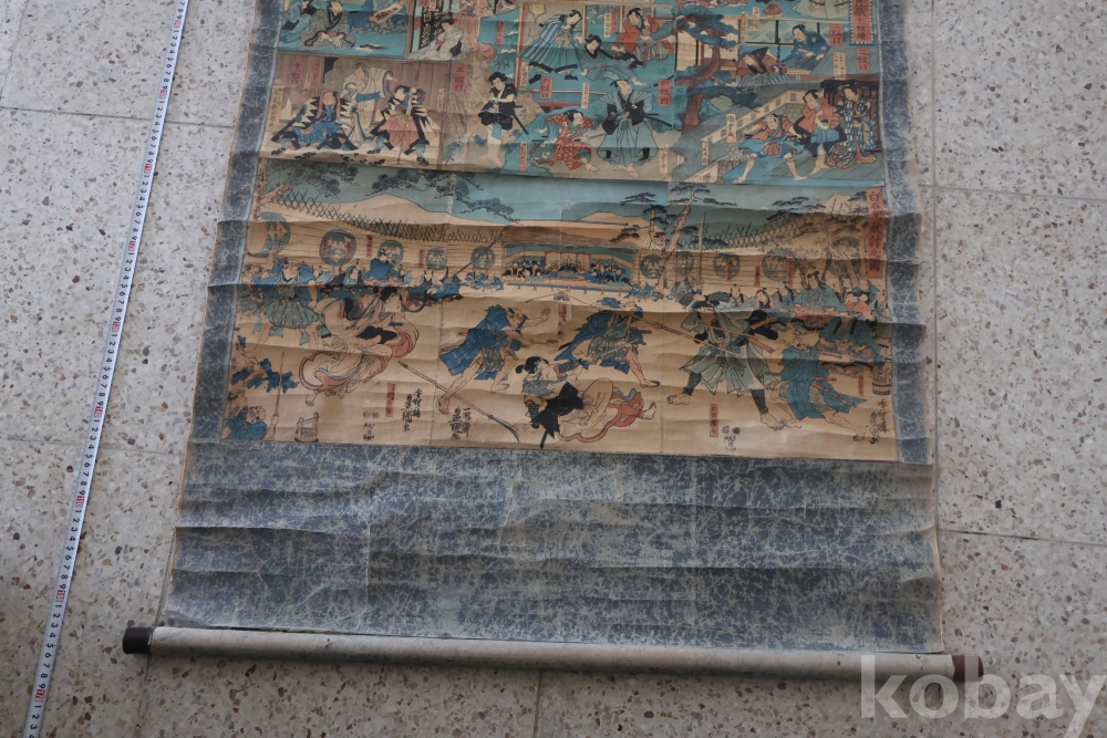 19세기 우키오에 목판화 3 세트 이며 오리지날 족자를 가진 명품 임니다 족자는 세월의 흔적이 보이는 대형 족자 임니다 당대 유명 화가의 원본 목판화 임니다