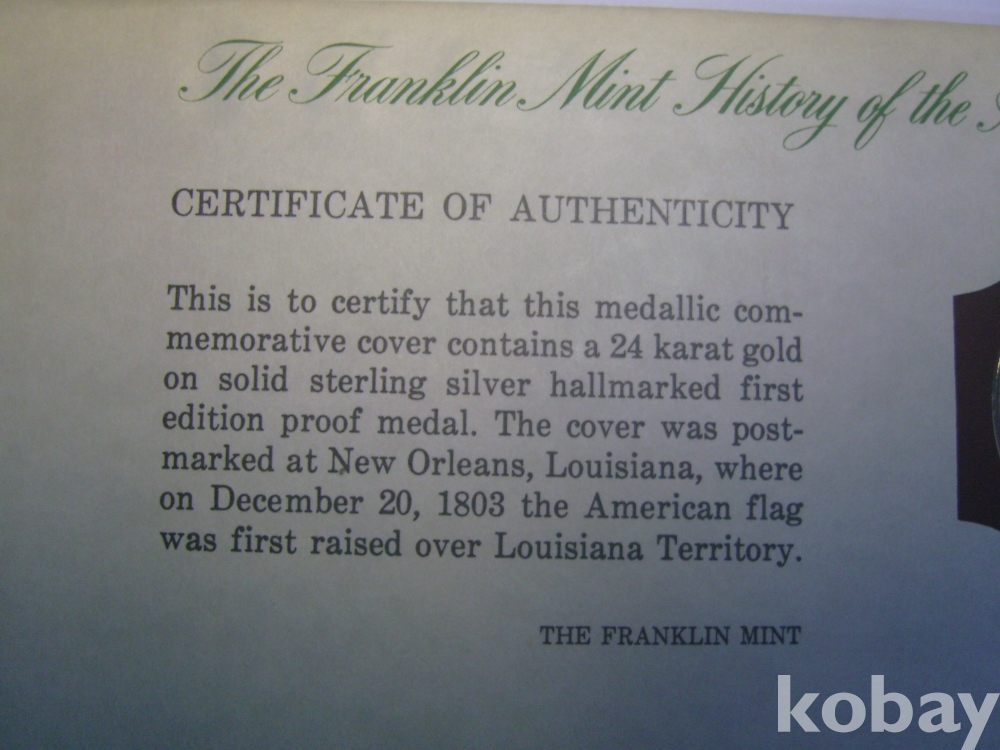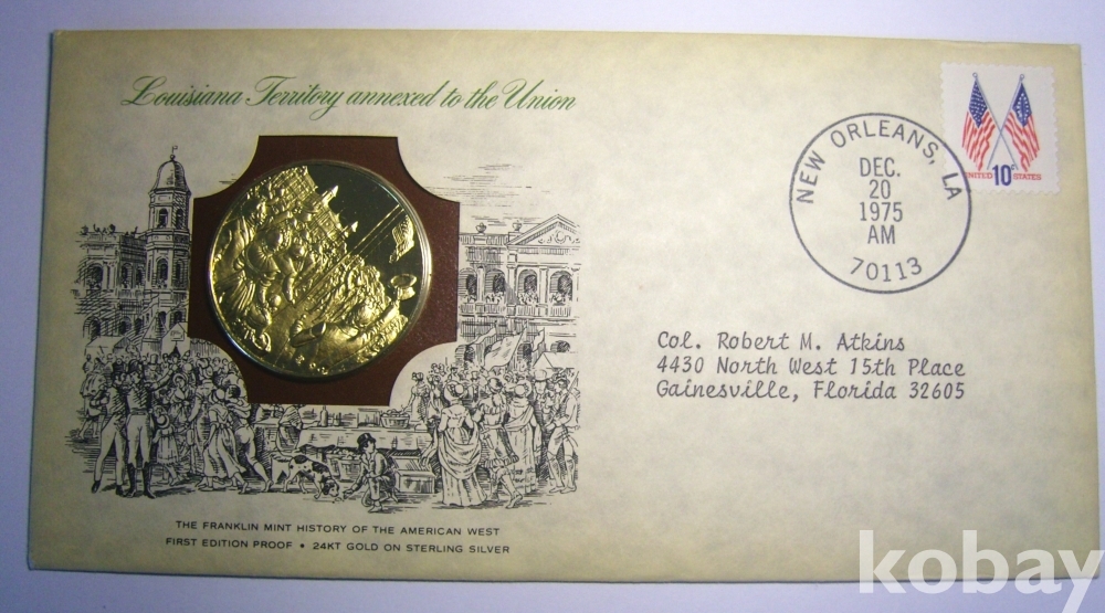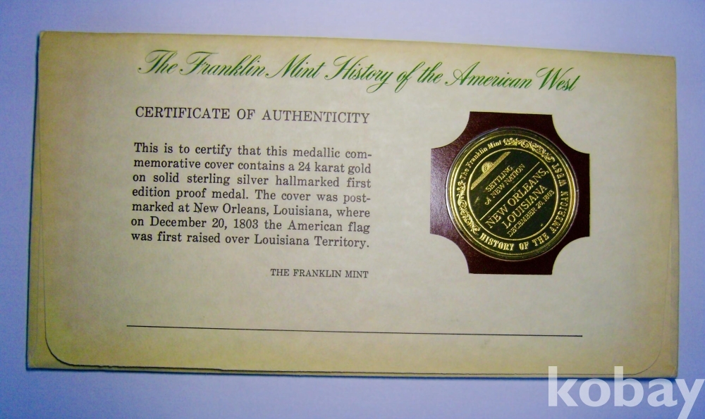 미국 New Orleans 뉴올리언즈 Franklin Mint 기념메달(24 KGP) + 초일봉피 1975년