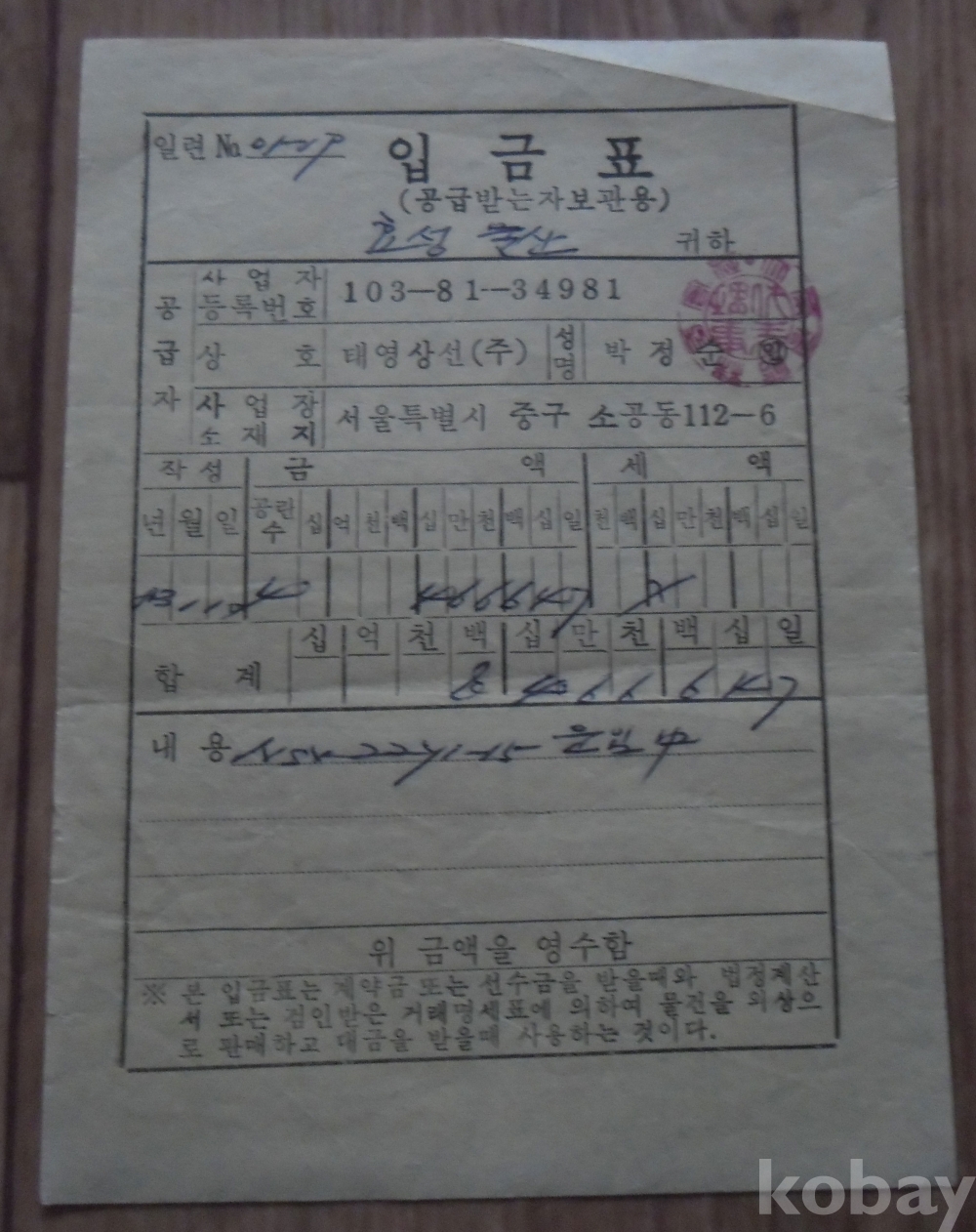영수증신청 : 수령확인시에 개인소득공제용 또는 사업자회원님의 지출증빙용(세금계산서대체)으로 신청하실 수 있습니다.