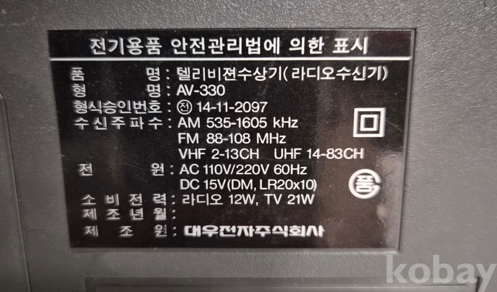 DAEWOO AV-330型 포터블 미니 TV/FM/AM 라디오 카세트 수상기 이며