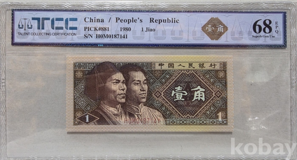 -1980년 중국 인민은행 발행 1각 지폐 TCC68 고등급 입니다.