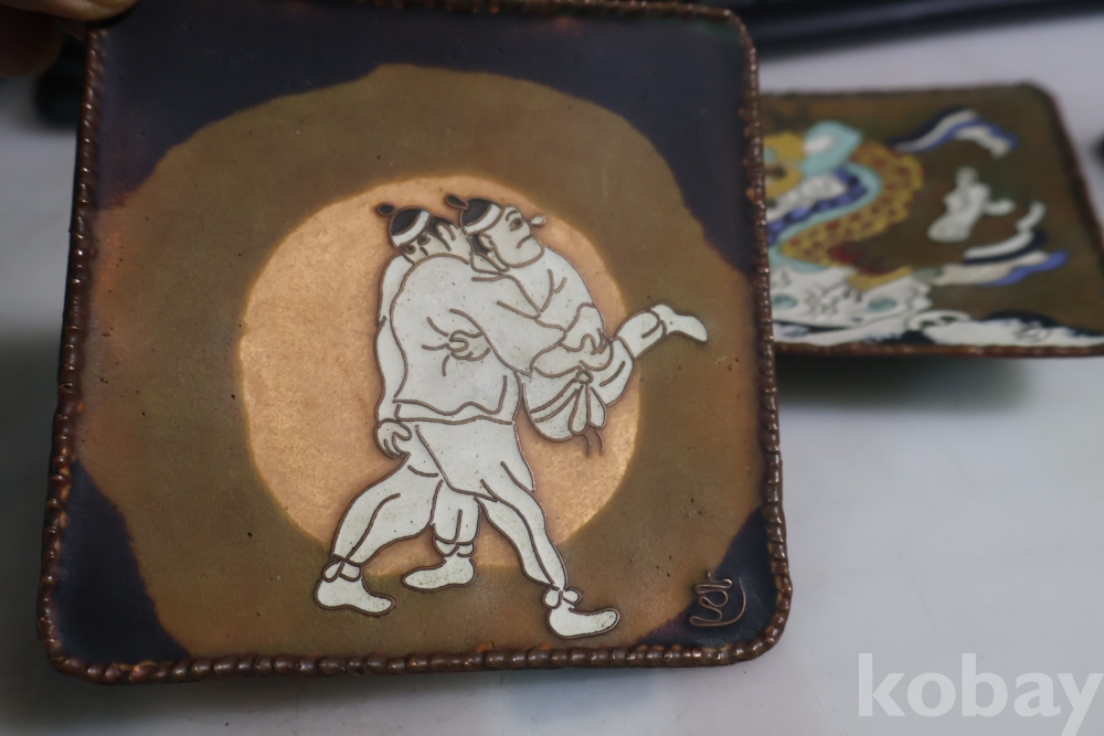 1980대 소공동 롯테 상가에서 고가로 구입한 칠보 공예 2 세트 이며 당시 유명 공예가로 알고 있읍니다 작가의 낙관 이 보임니다 사진 참조 하세요