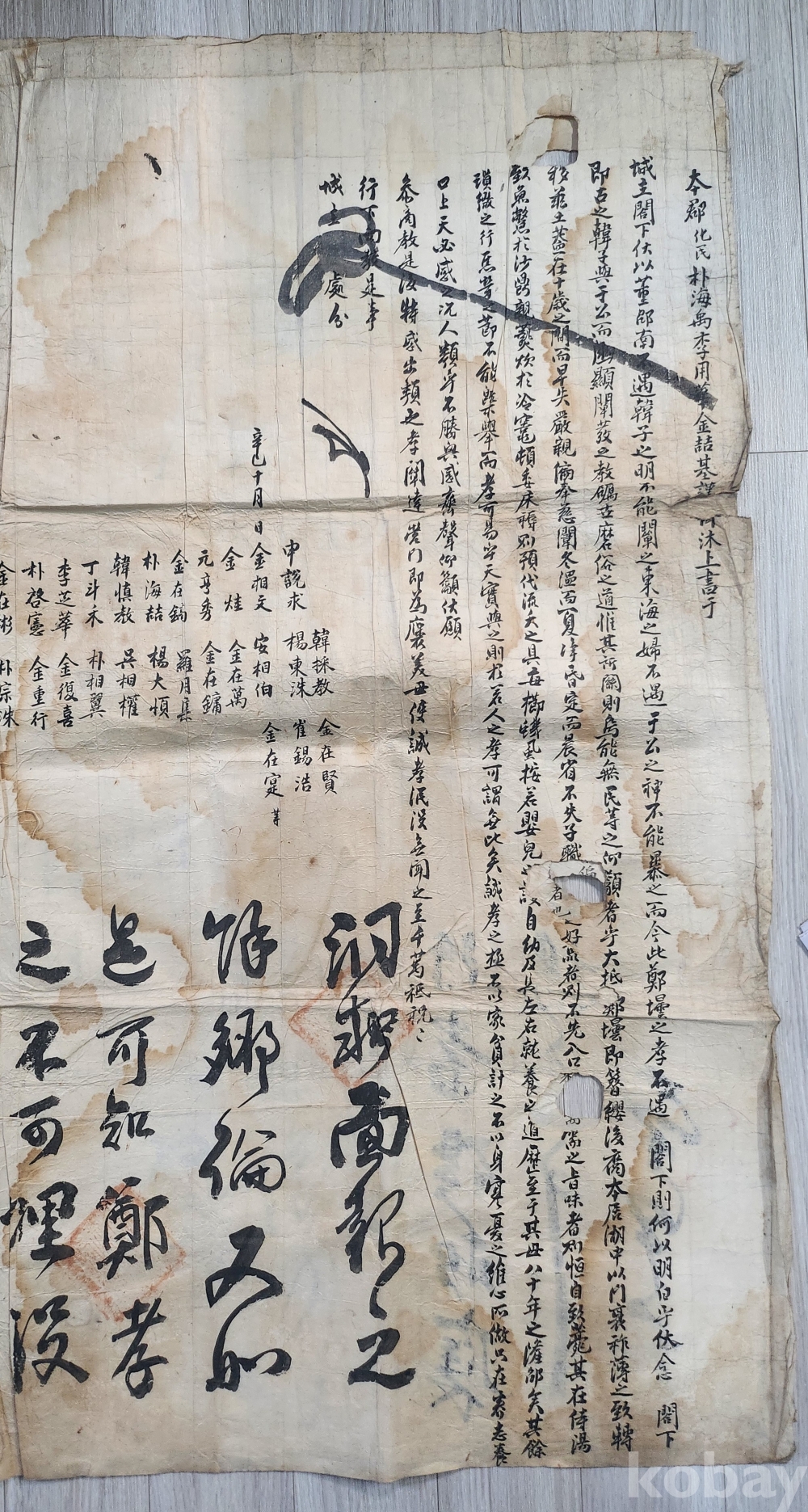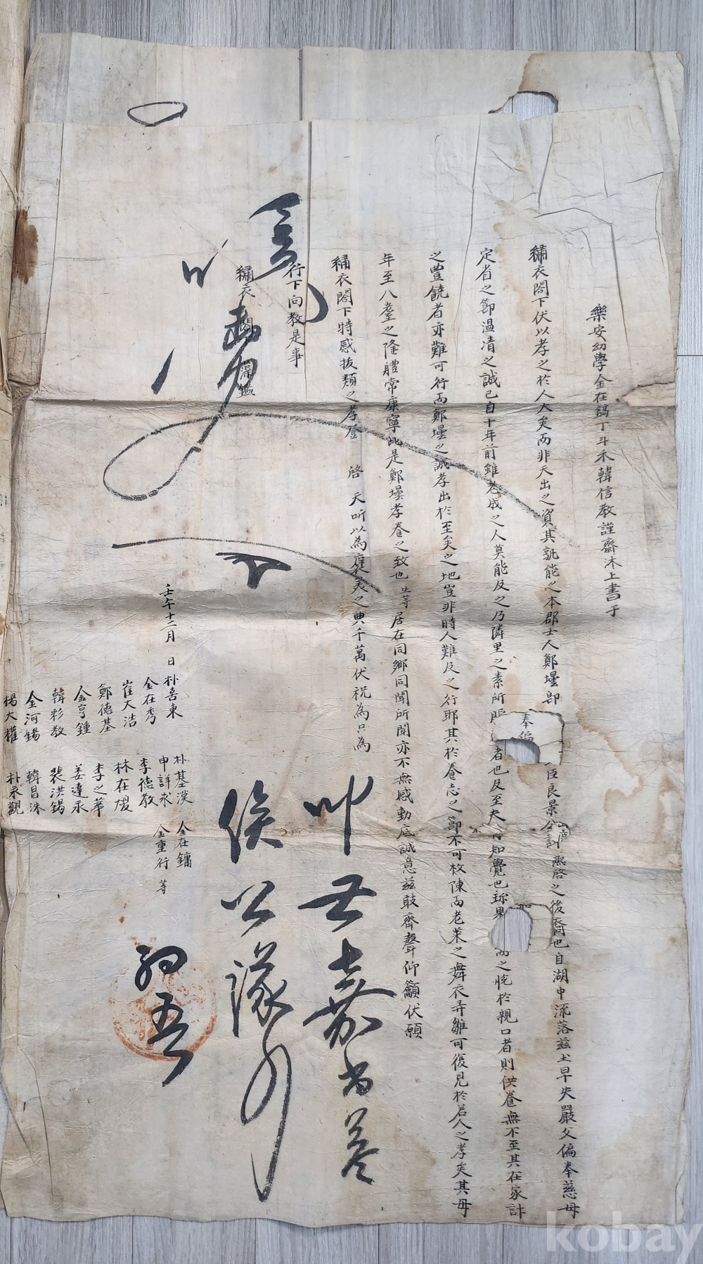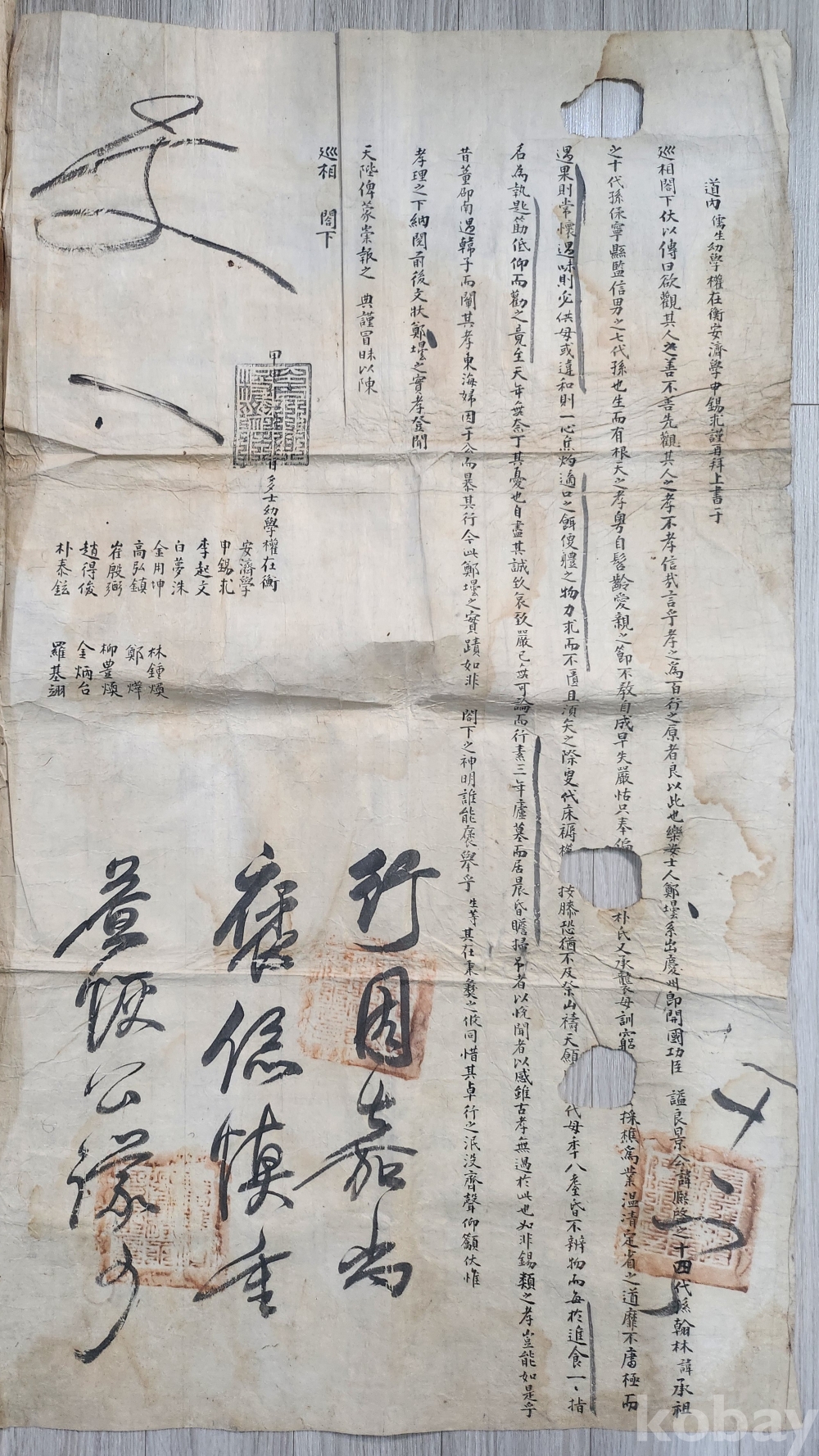 조선시대 상서문 5장 입니다 처음 사진은 5장모아 찍은것이며 순서대로 5장입니다 첫장은 작은규격 입니다 암행어사 마패도장도 1장 있습니다 사진에보시듯이 구멍이 난곳이 있습니다 각장사진을 올리니 참조바랍니다