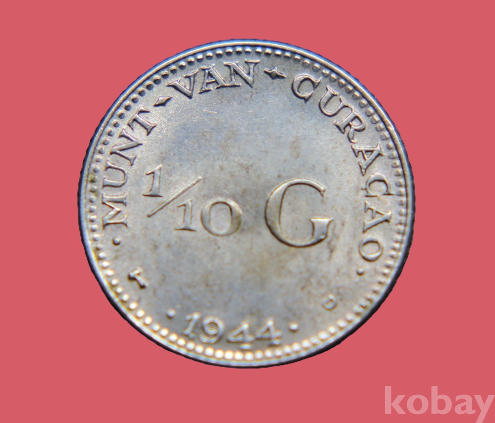 네덜란드령 쿠라카오 1/10 굴덴 은화 1944년 (BU)