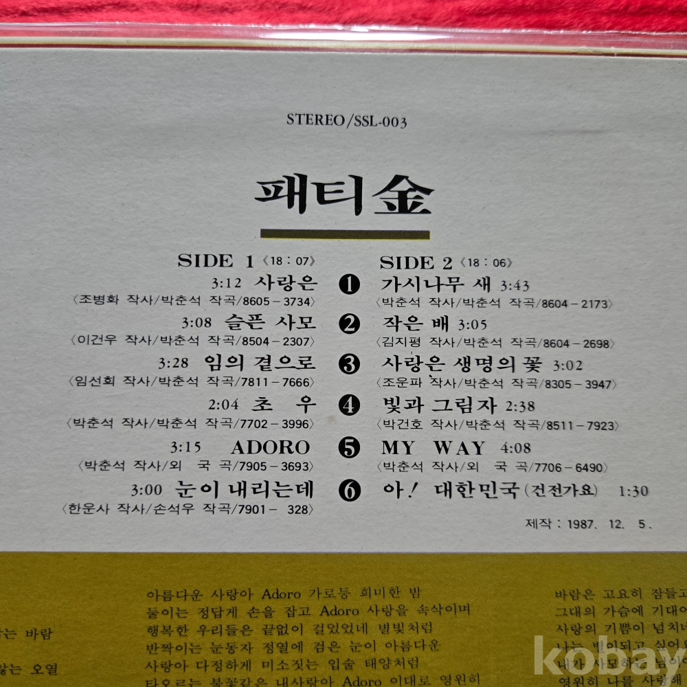 중고 LP인 관계로 취소나 반품도 불가합니다.