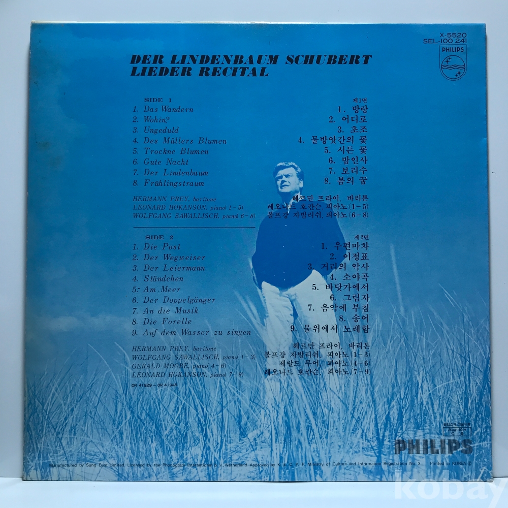 LP 81,350-10 Hermann Prey - Schubert Lieder Recital _ 자켓 EX+ 알판 EX+ 76 년 국내반