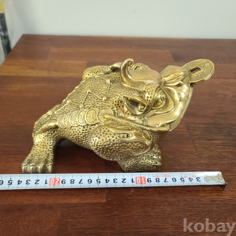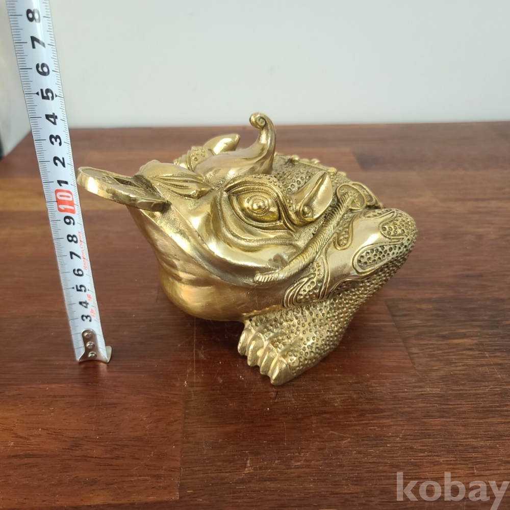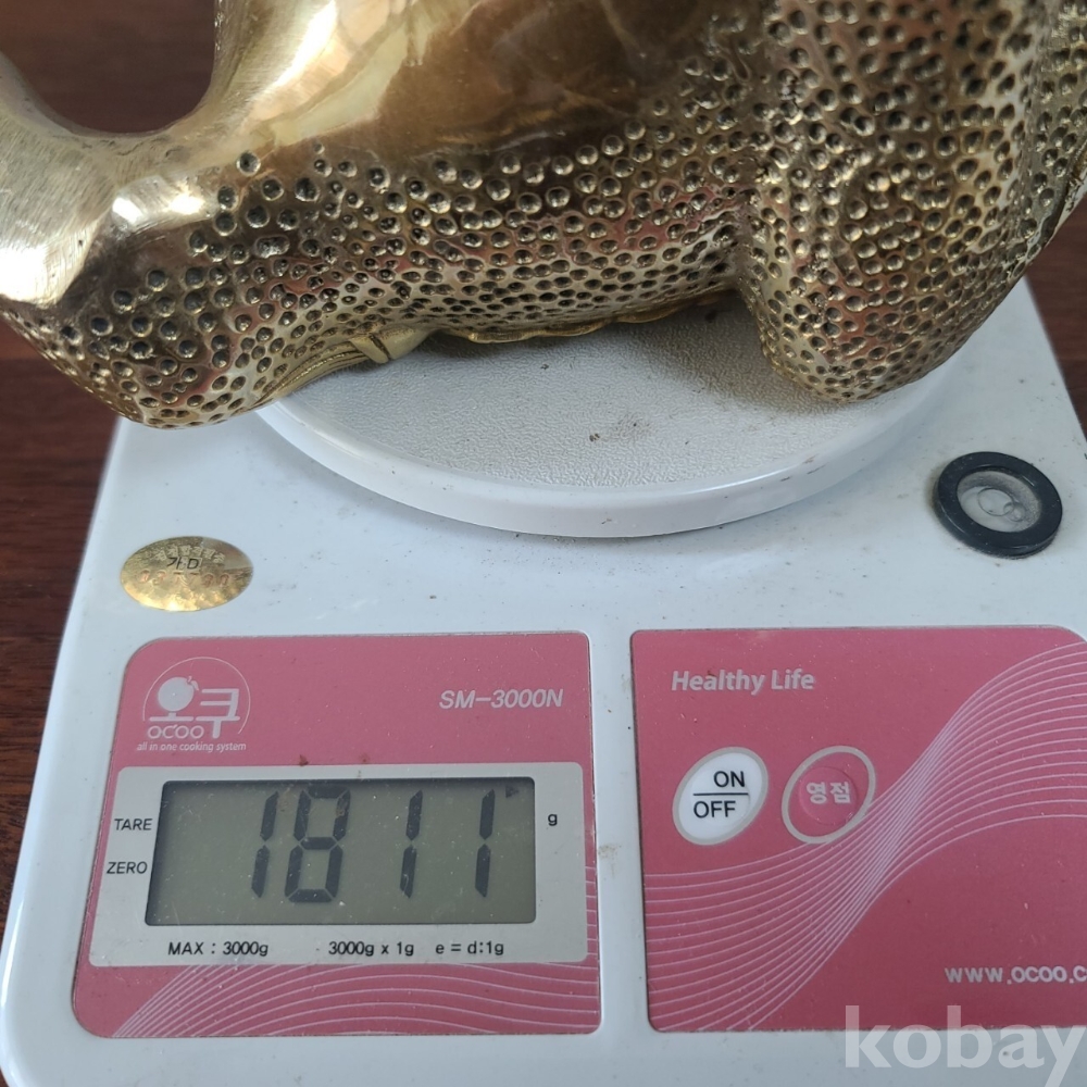 재물을 두른 삼족 두꺼비를 묵직한 동으로 제작한 인테리어 소품입니다. 미사용으로 집에 두시면 분위기도 살고 멋진 소품이 될 것 같습니다. 크기와 무게 모두 좋은 작품입니다
