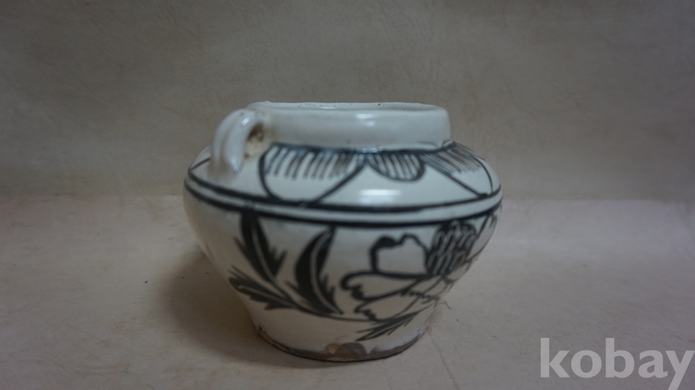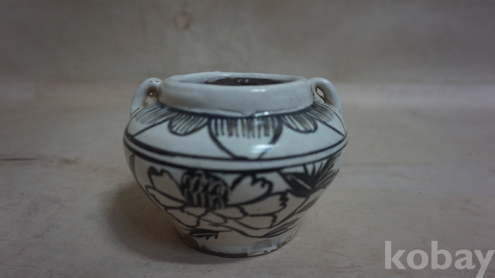 ◈◈민국시대../백자 양고리 철화,ㅡ''모란문,ㅡ''작은 단지 호 한점◈◈