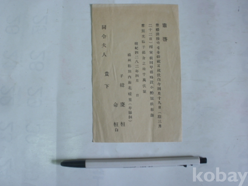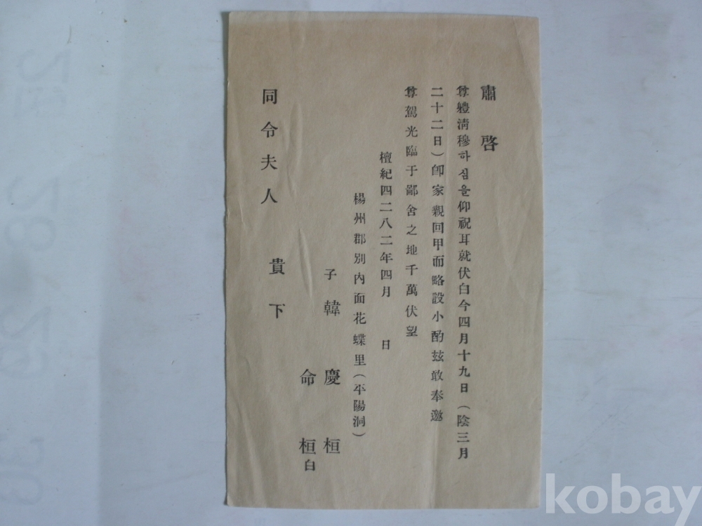 가친 회갑 - 초청장 (1949년, 양주군 별내면)