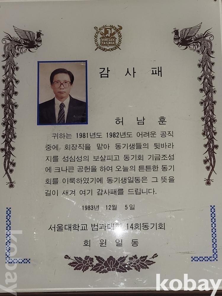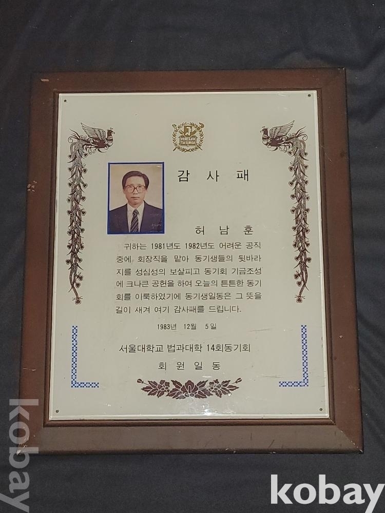 빈티지 1983년 서울대학교 법과대학 14회 동기회 회장직 감사패입니다.
