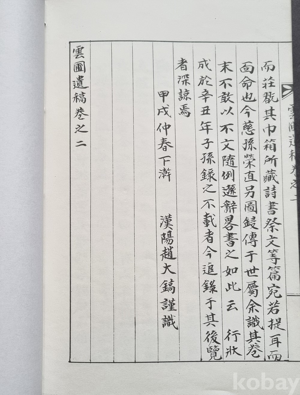 발문: 갑술년(1994년으로 추정) 한양 조대호(趙大鎬)가 쓴 식(識)이 포함되어 있어, 후대에 걸쳐 정리된 문집임을 보여줍니다.