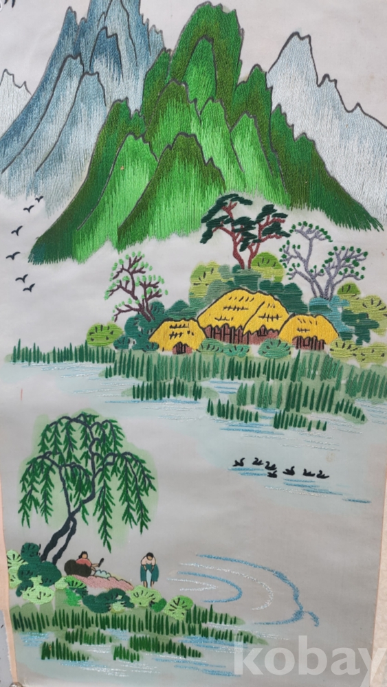 수예(手藝)로 완성된 산수화 1/2 반절 크입니다,