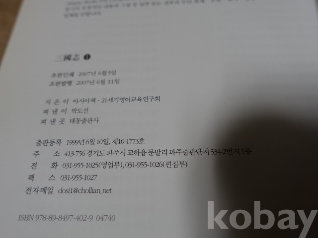 2R781)2007년 태동출판사 발행-영어/한글 [삼국지 1]