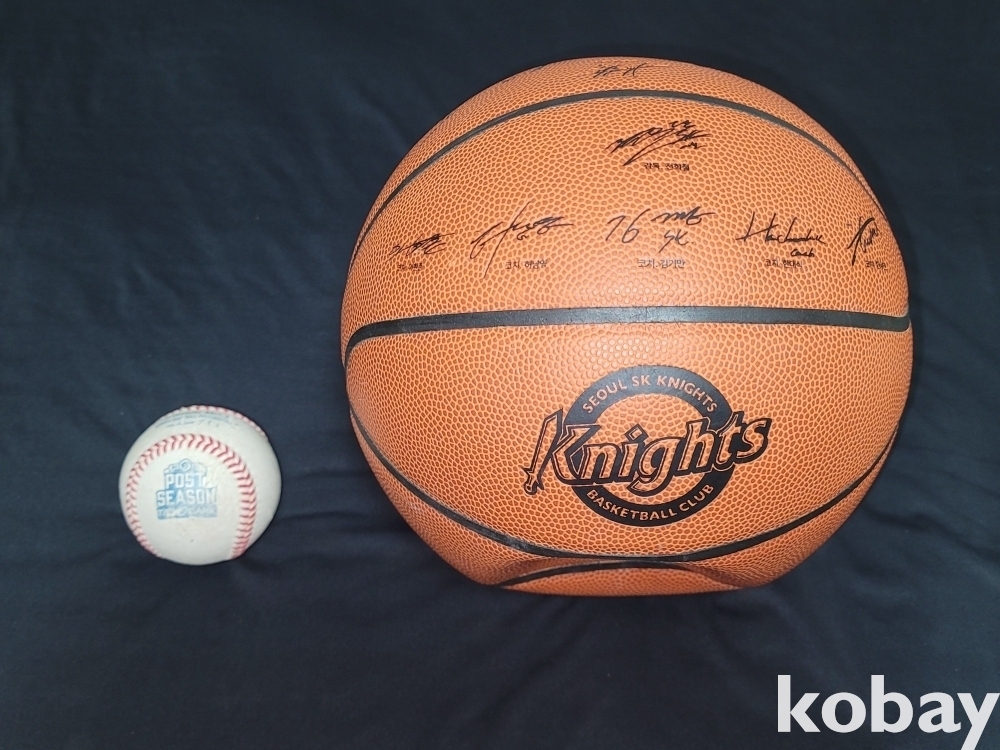 빈티지 프로농구 서울 SK 나이츠 농구공, 프로야구 포스트시즌 스카이라인 야구공 일괄입니다.