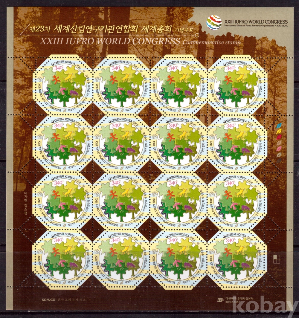 (한국시트) 2010.8.23 제23차 세계산림연구기관연합회 세계총회 sheet of 16 MNH