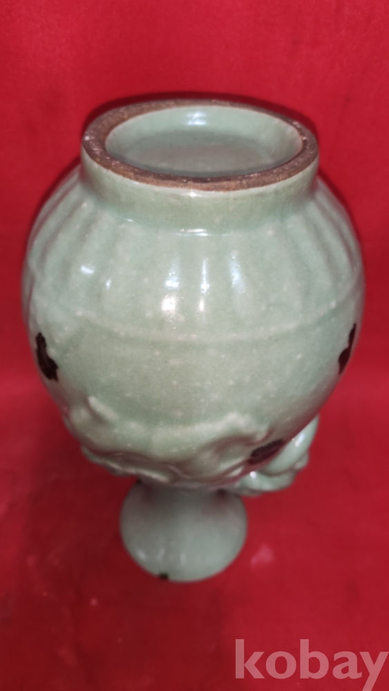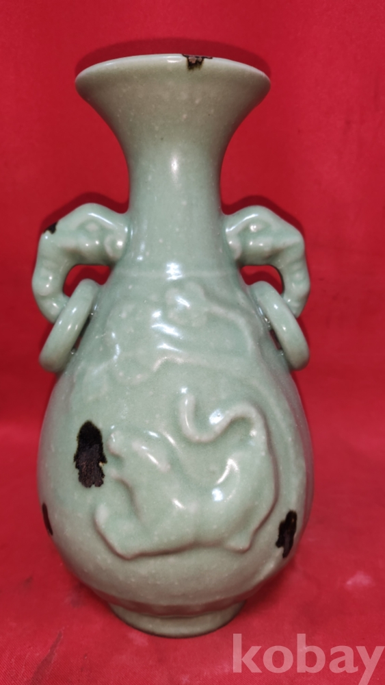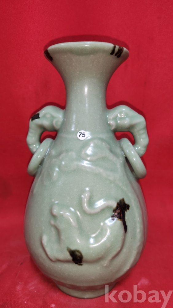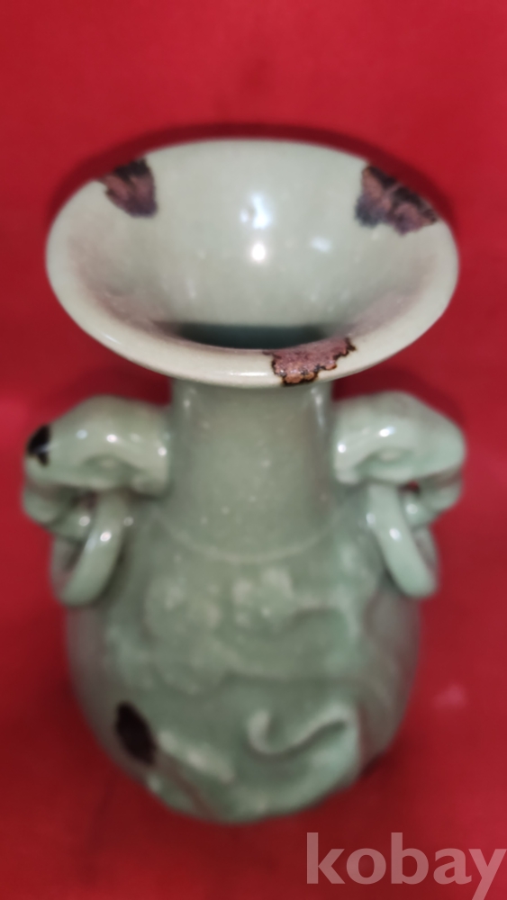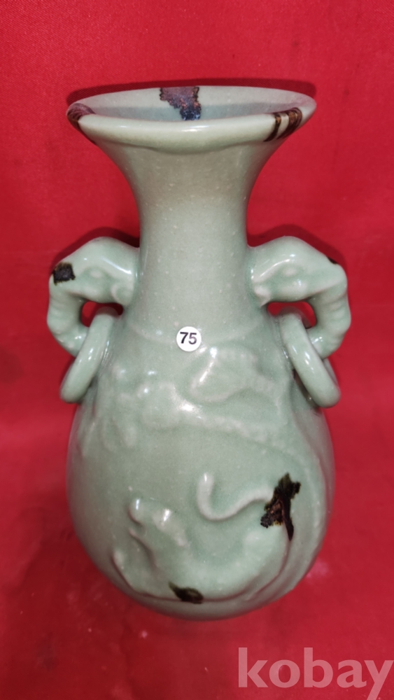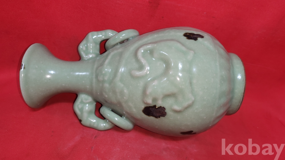비색청자 (翡色靑磁) 양귀달린 소나무와 호랑이(松虎) 문양 광구병입니다,