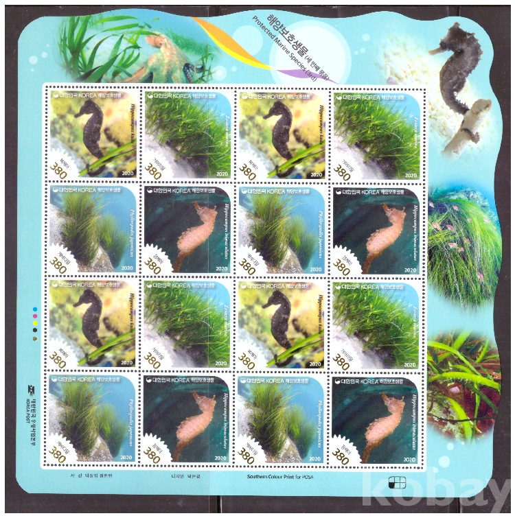 (한국전지) 2020.8.7 해양보호생물(세번째묶음) sheet of 16 MNH