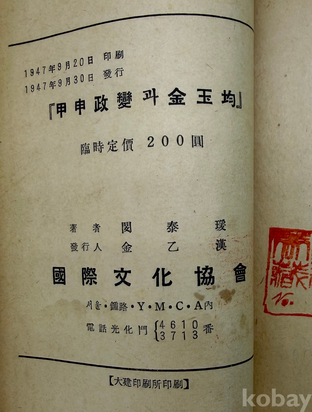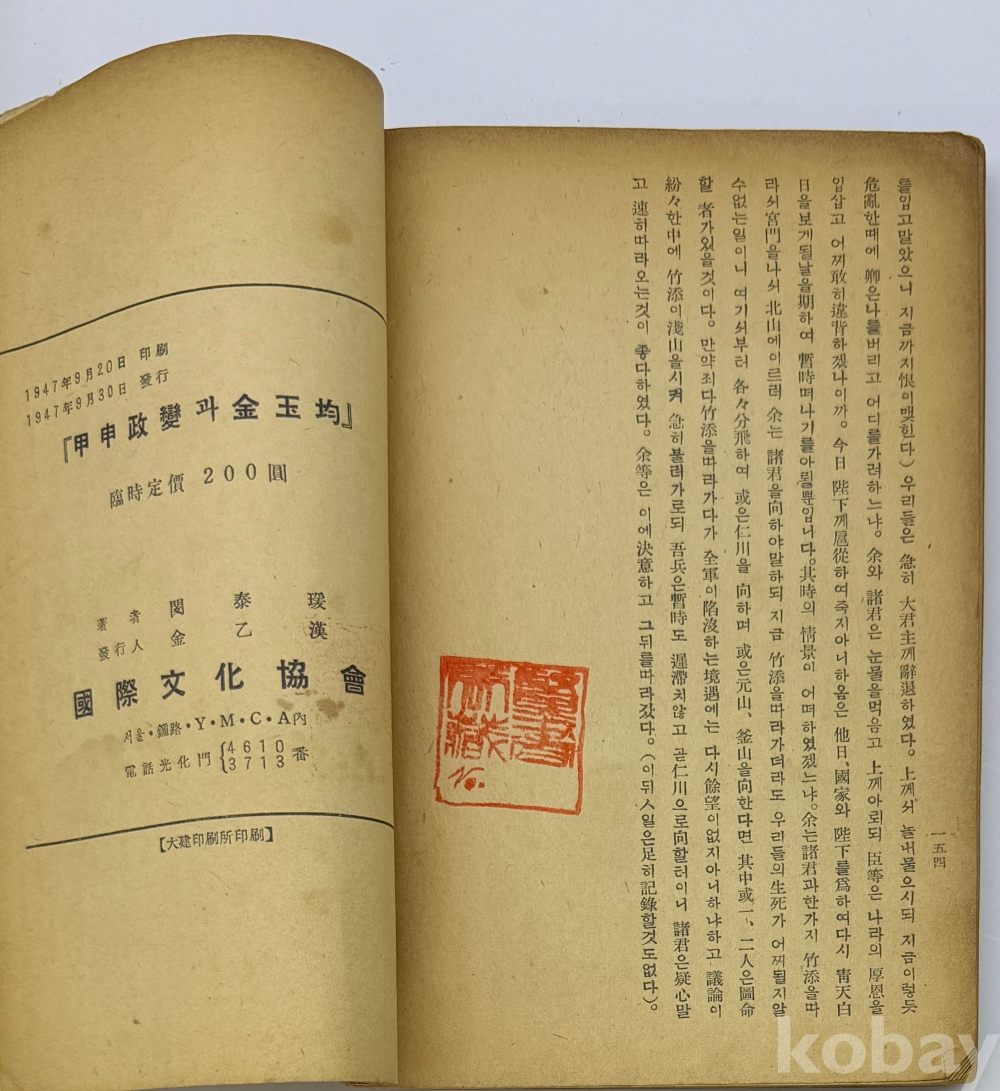 물 품 명 | <좋-았書! 1탄> [35] 1947년 국제문화협회 발행 [갑신정변과 김옥균] 초판본 1책 | |||||