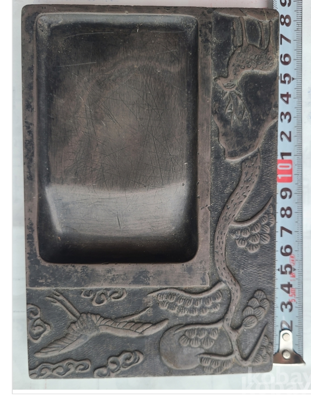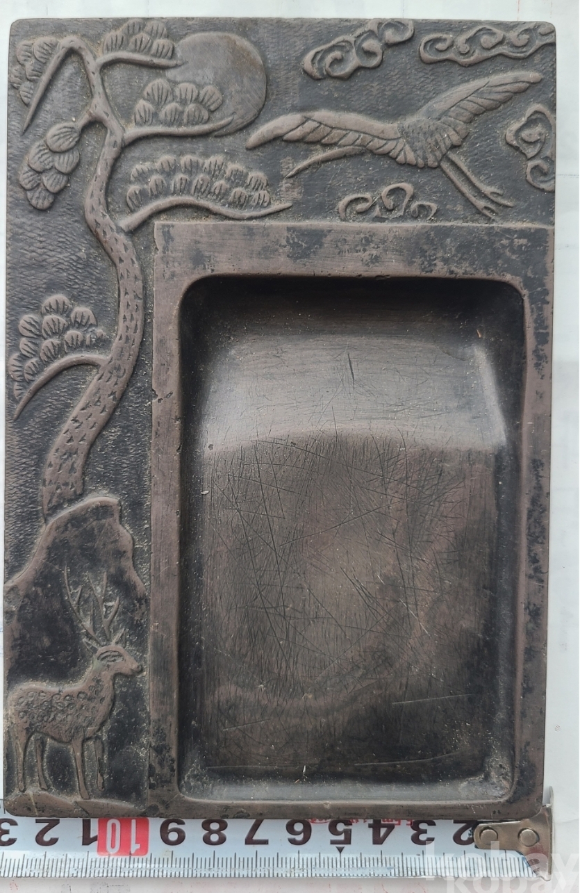 용, 학, 구름, 소나무 등의 십장생 도안은 장수를 기원하는 의미로, 조선 후기 또는 대한제국 시기의 문방 벼루로 수집적 가치가 높습니다.