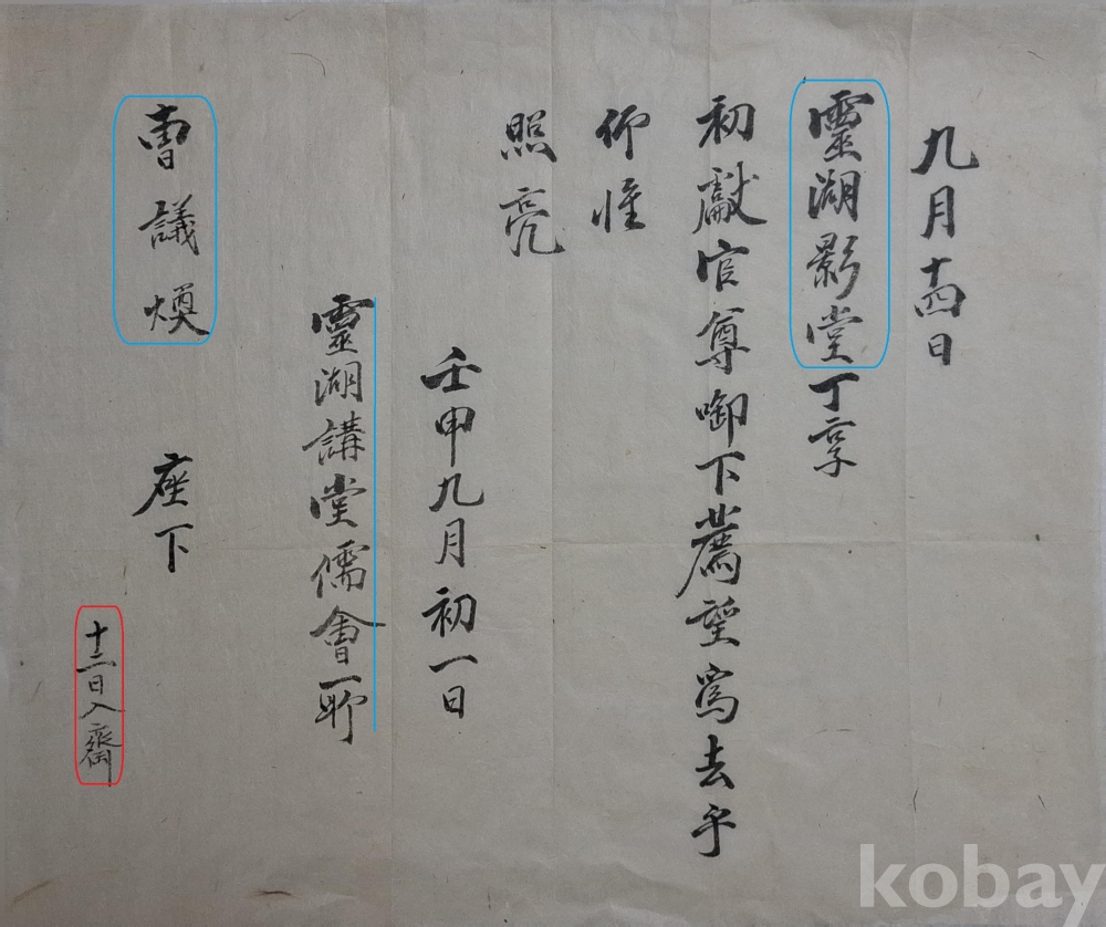 ◈ 영호강당유회소(靈湖講堂儒會所)에서 당리(堂里)에 사는 조의환(曺議煥)에게 보낸 문서.