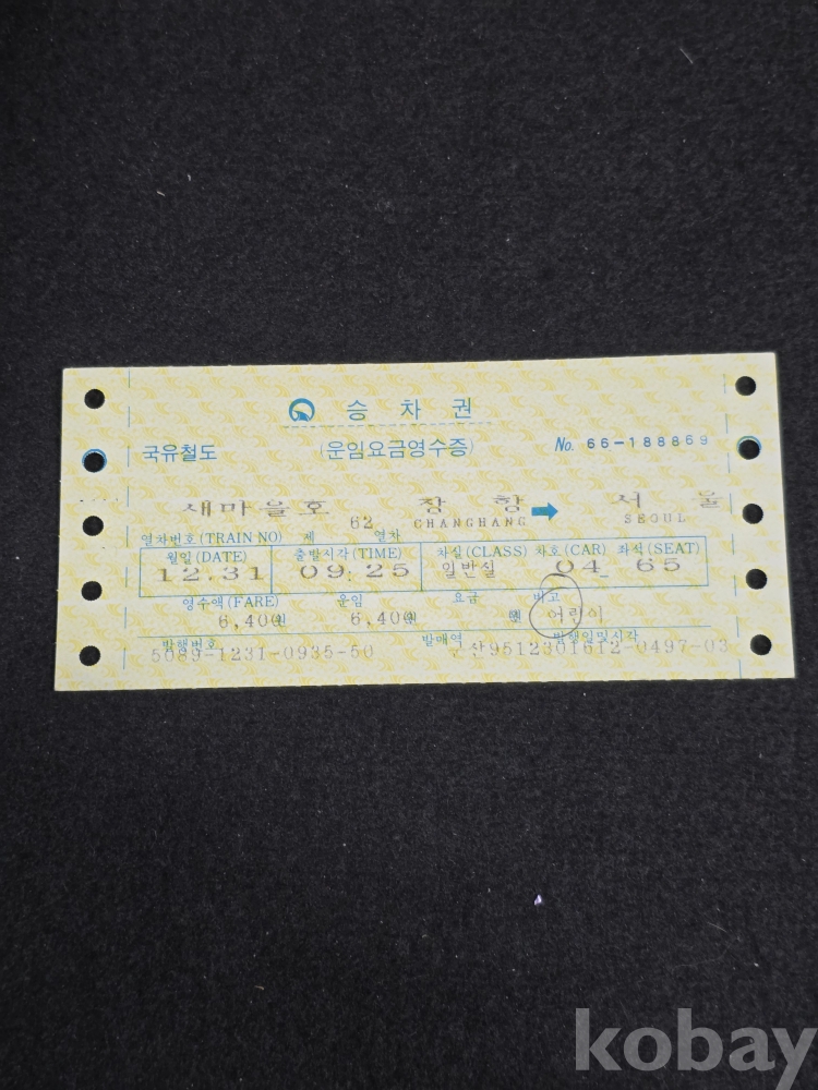 (((철도자료/지하철자료))) 오래전 국유철도 승차권 (새마을호) (장항-서울)