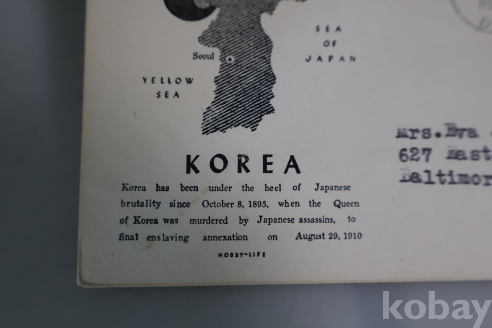 귀한 조선에 대한 미국발행 우표 봉투 임니다 영어로 민비의 암살을 가진 극히 귀한 역사적 자료 임니다