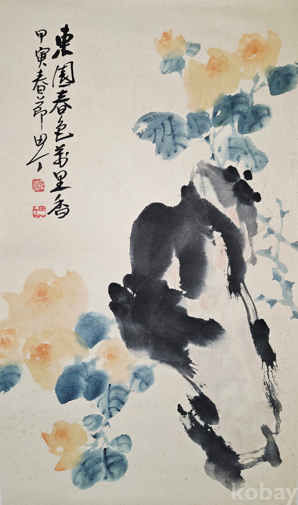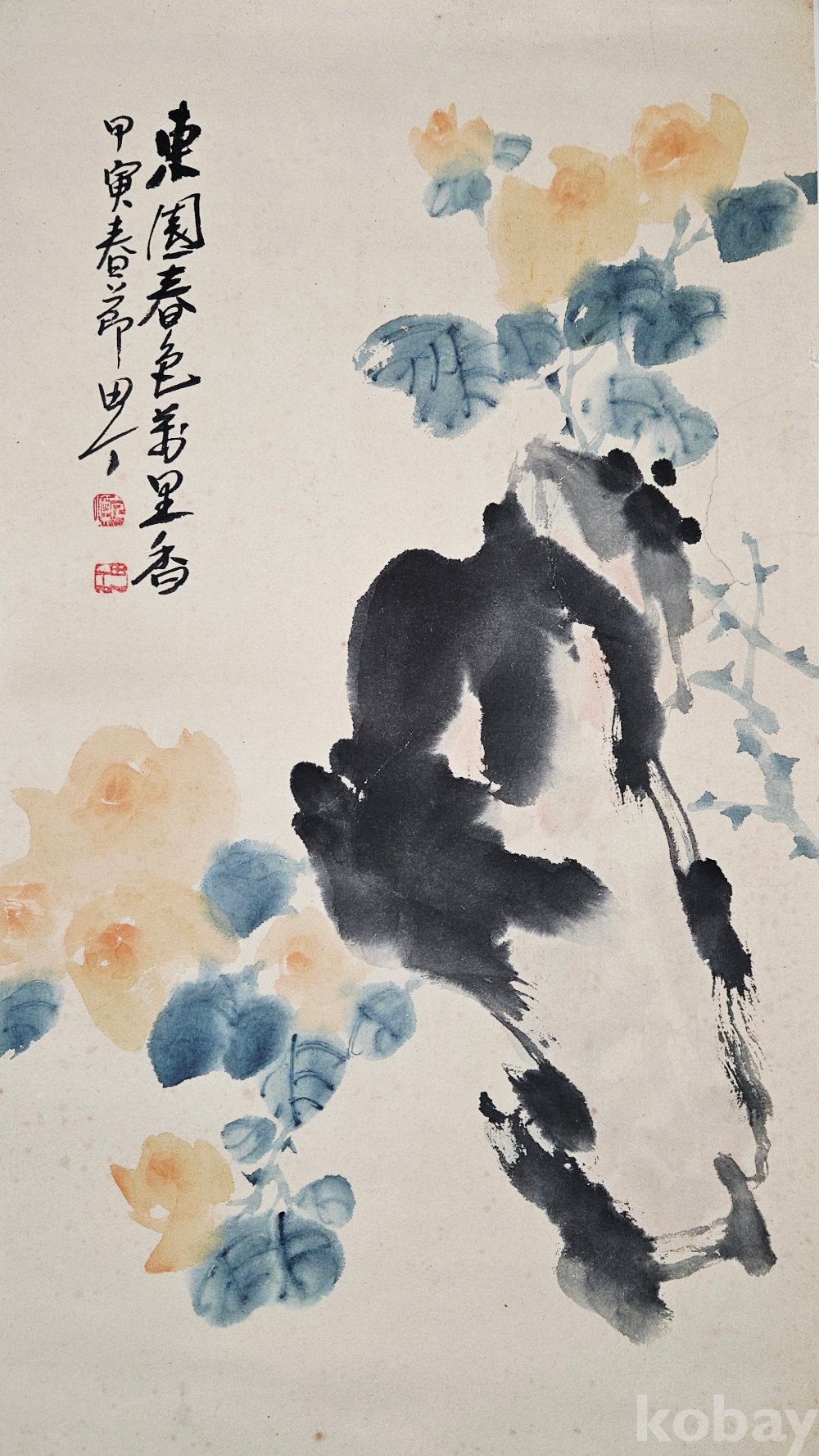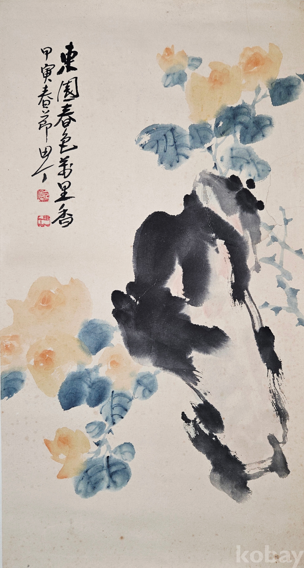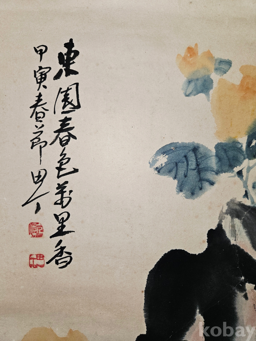 진품 보증, 배접 완료, 오른쪽 중간 부분 상태 사진 참고