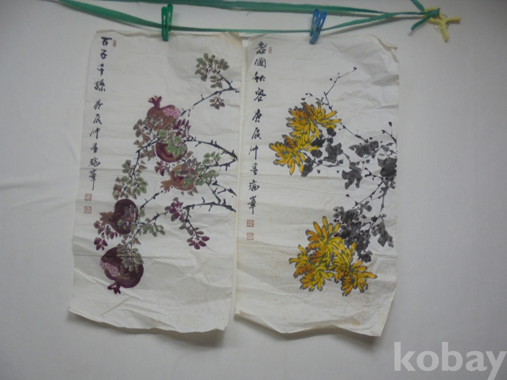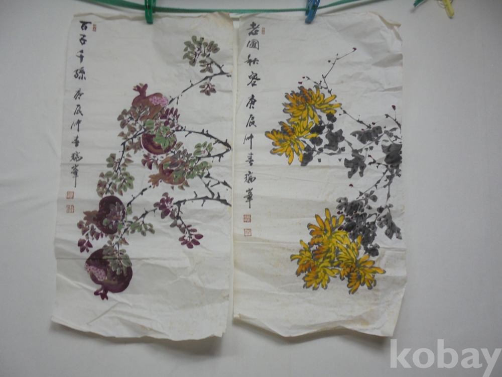 한국산글씨그림산수화 ㅡ6 ㅡ석류국화꽃 두장