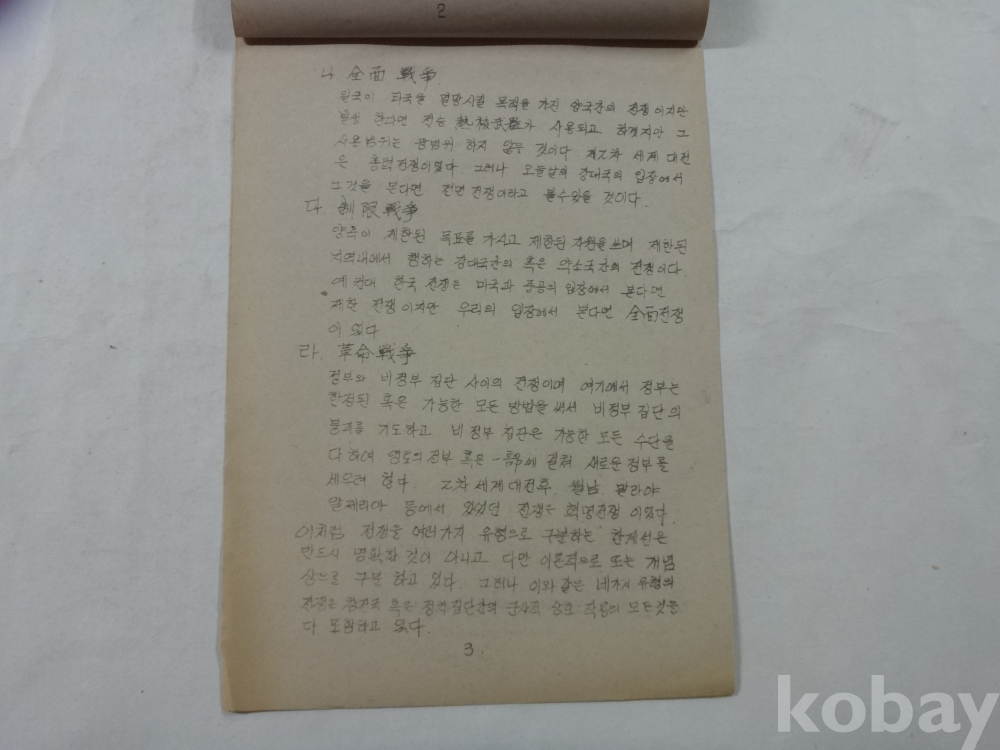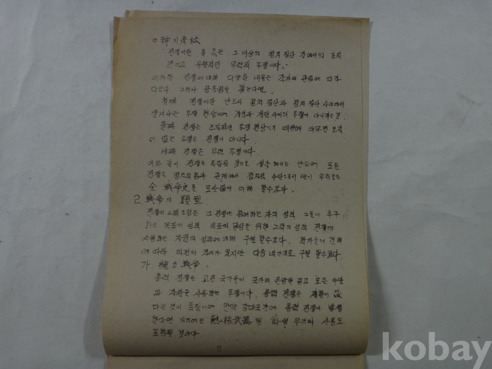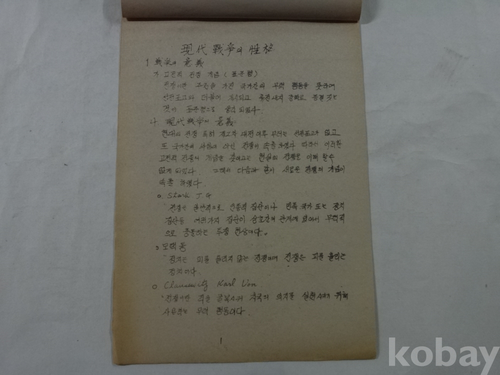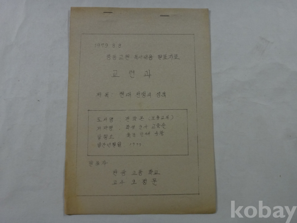 현대 전쟁의 성격 (중등교원 독서내용 발표자료, 교련과, 원광고등학교 교사, 1979년)
