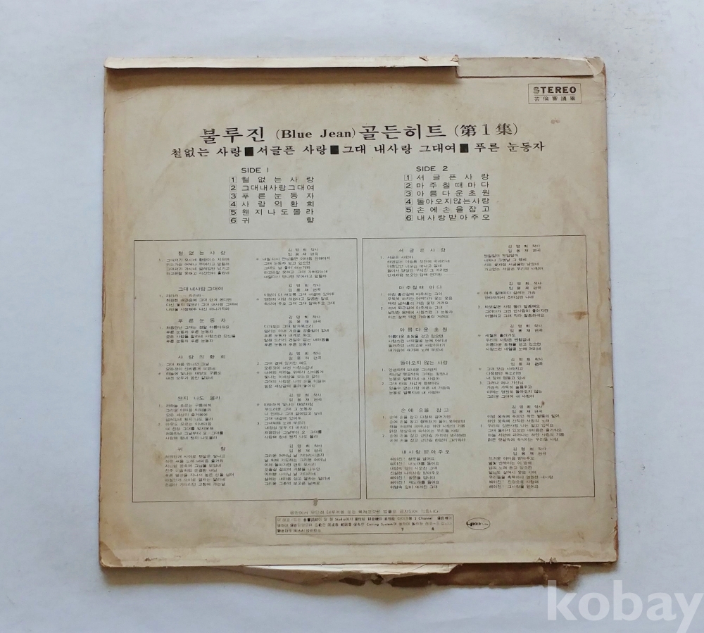 VG : 주름, 접힘, 모서리 찢김 다수 음반상태