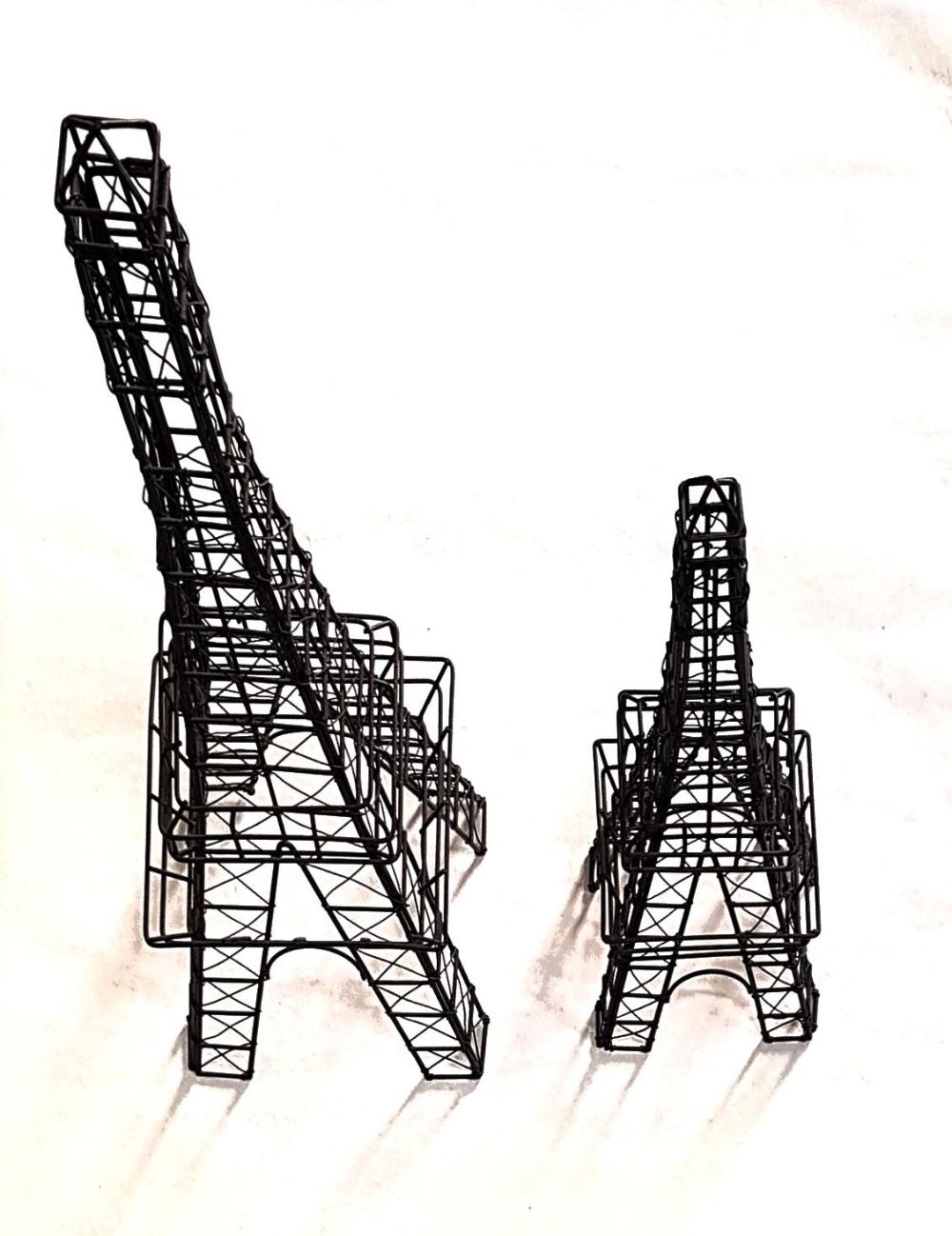 검정색 아연도금철사로 만든 에벨탑 모형두점