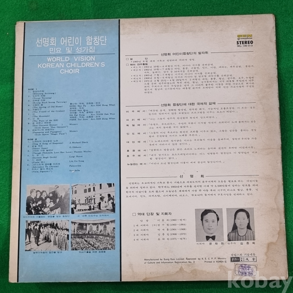 (LP판)선명회 어린이 합창단(민요 및 성가집)제 1집.