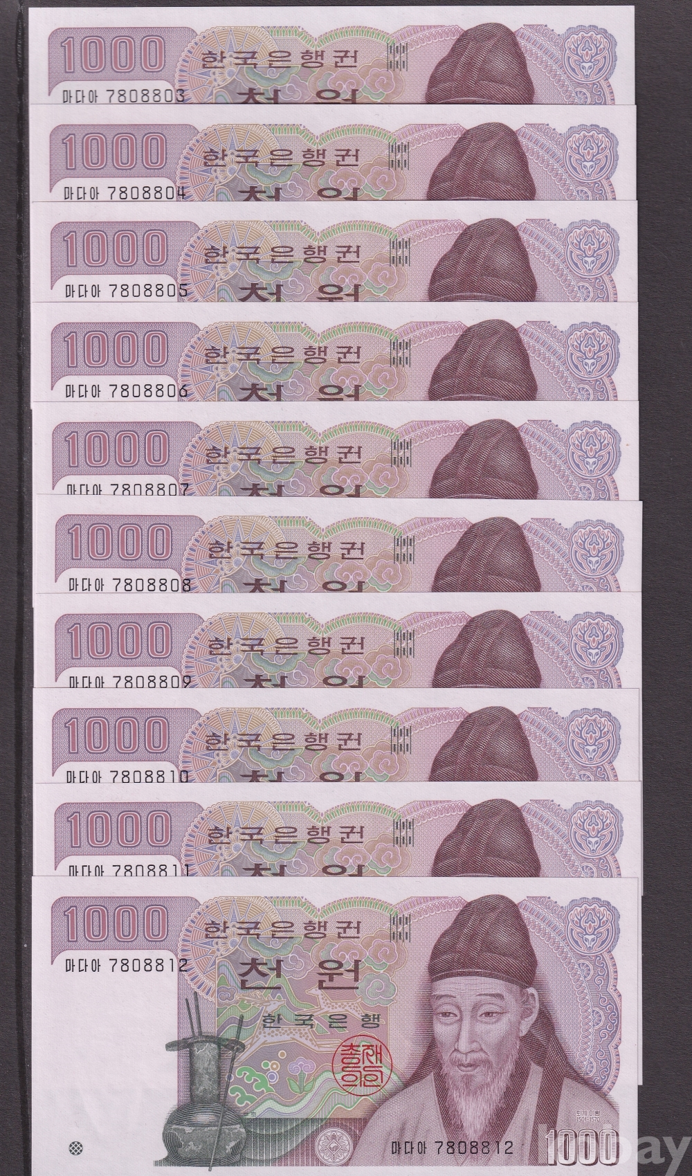 - 1983년 2차 천원 양성권 10연번 미사용 지폐 - 10장 일괄