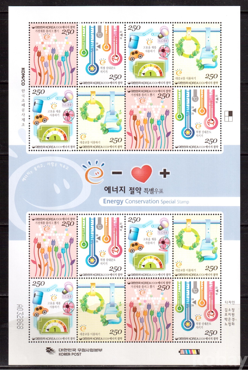 (한국전지) 2008.8.1 에너지 절약 sheet of 16 MNH