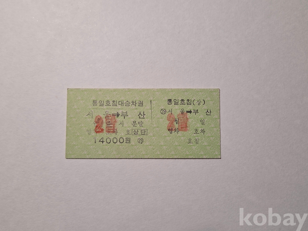 서울->부산간 통일호 침대승차권으로 자세한 내용은 사진을 통해 확인 바랍니다