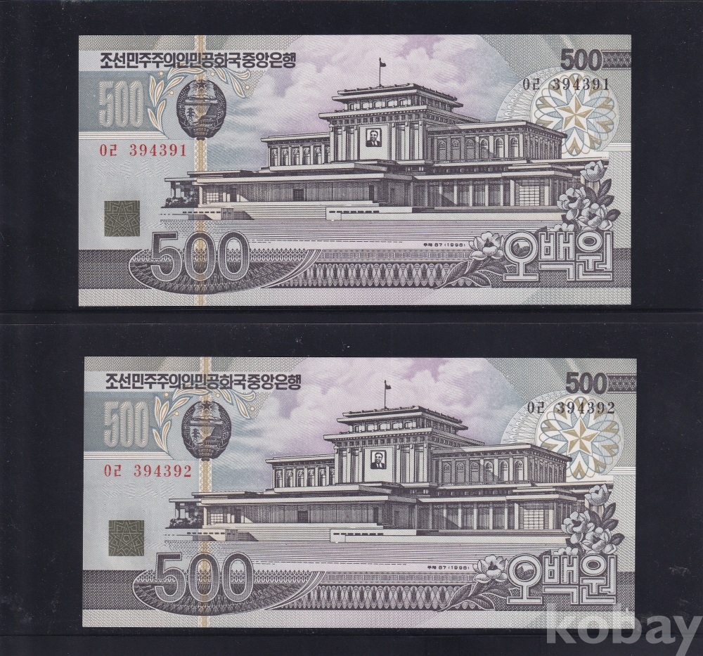 - 윗동네 1998년 오백원 통용권 2연번 미사용 지폐 - 2장 일괄