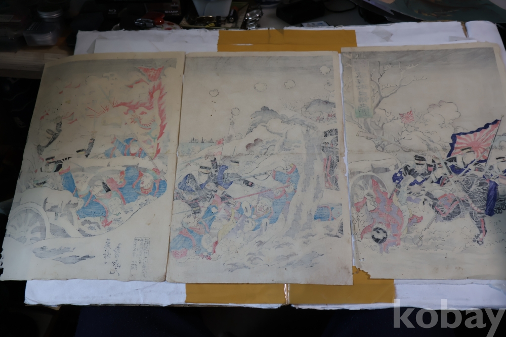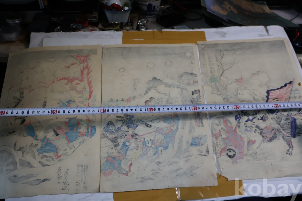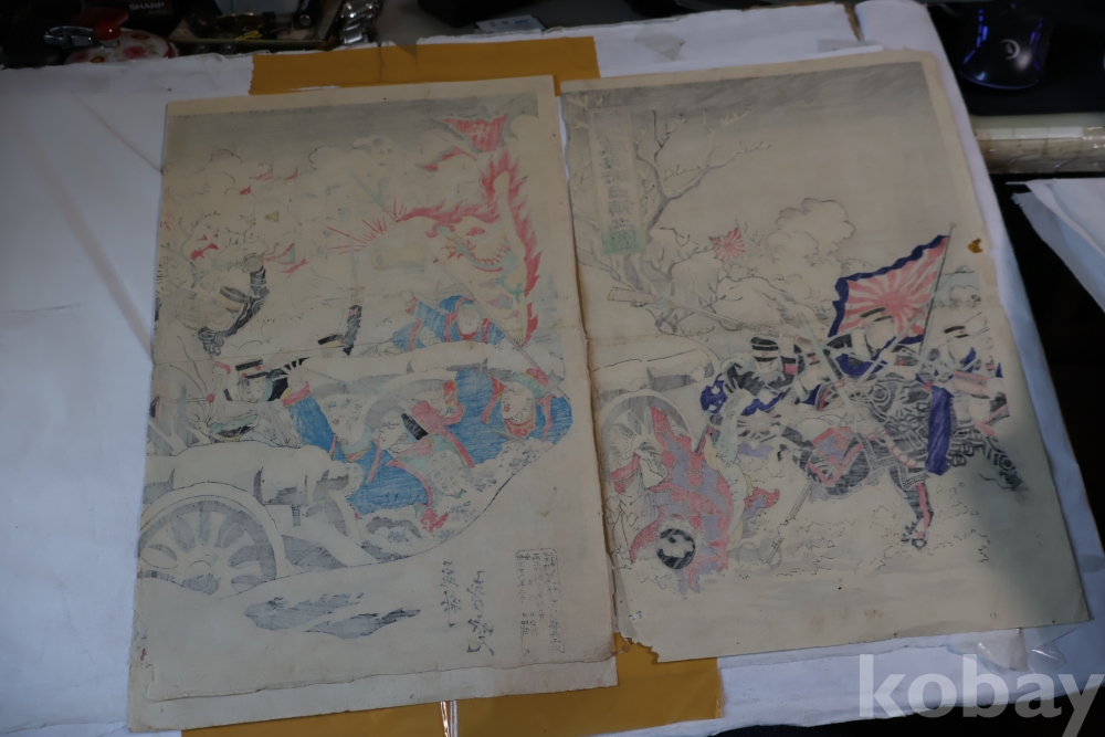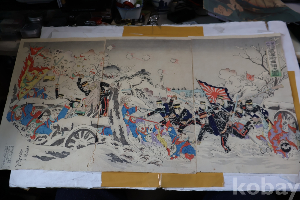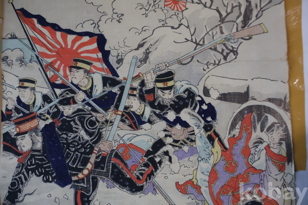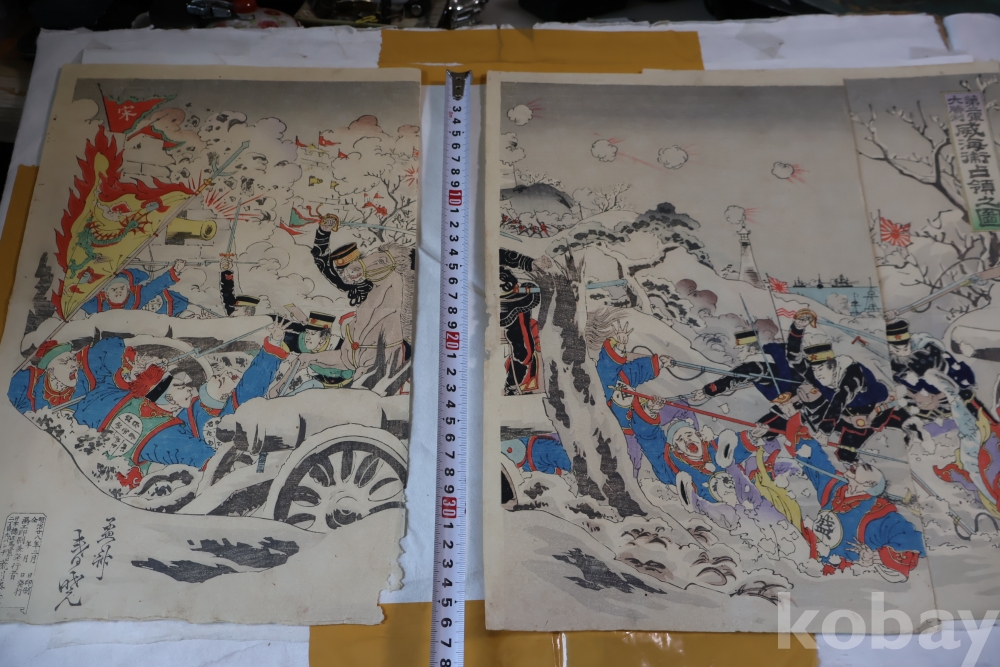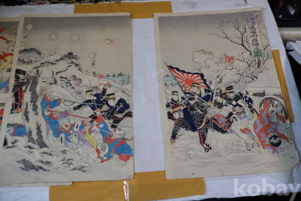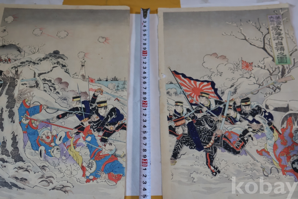 설경의 배경을 가진 명화 목판화 원본 청일 전쟁 임니다 위해위 전투를 다이나믹하게 표현한 명화 임니다 /